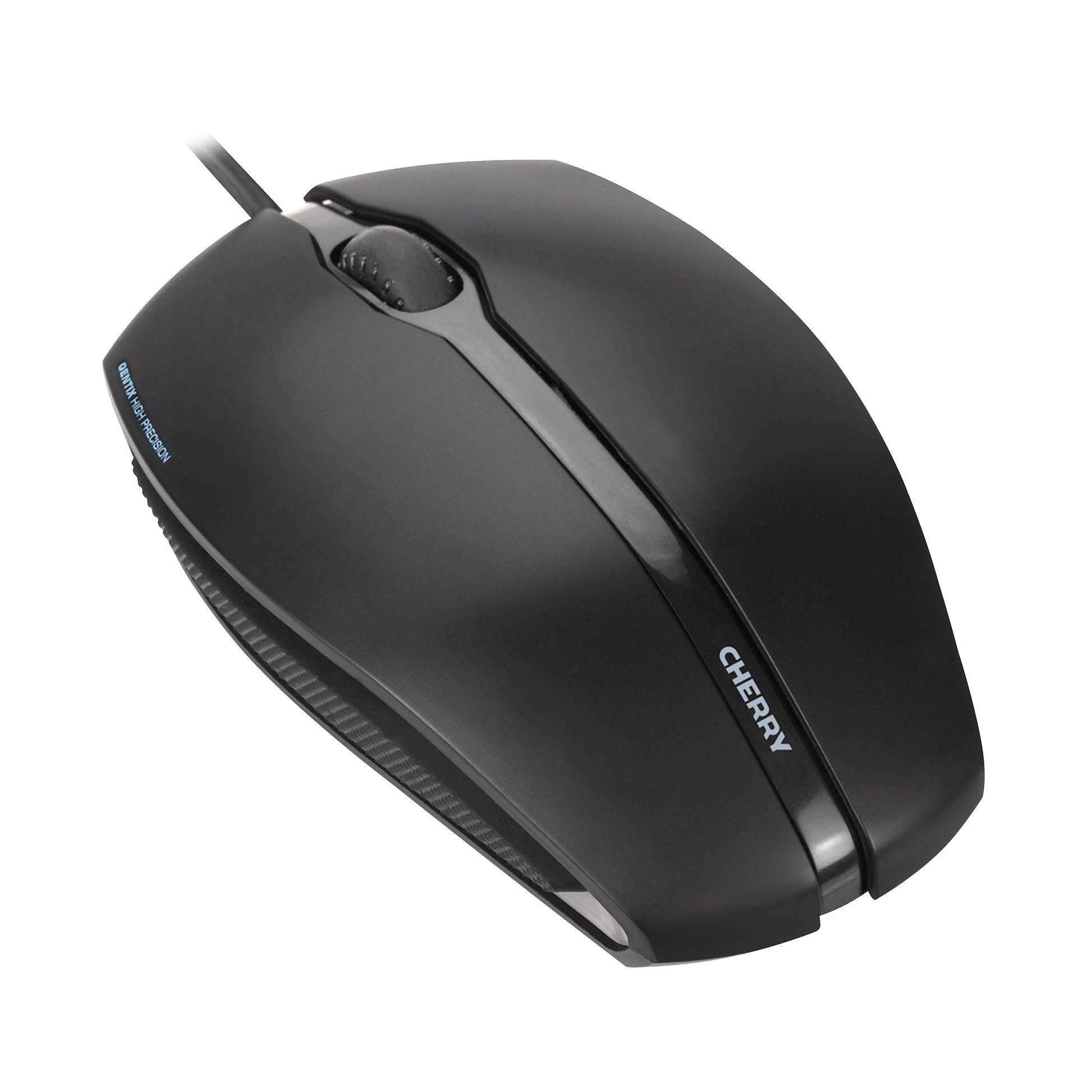 Cherry Gentix USB Wired Optical Mouse Scroll Wheel 1000dpi Black JM-0300. 3 buttons and optical sensor. Rubber side surfaces. Rubber scroll wheel. Symmetrical design, suitable for left and right-handed users. Optical sensor with 1000dpi resolution.