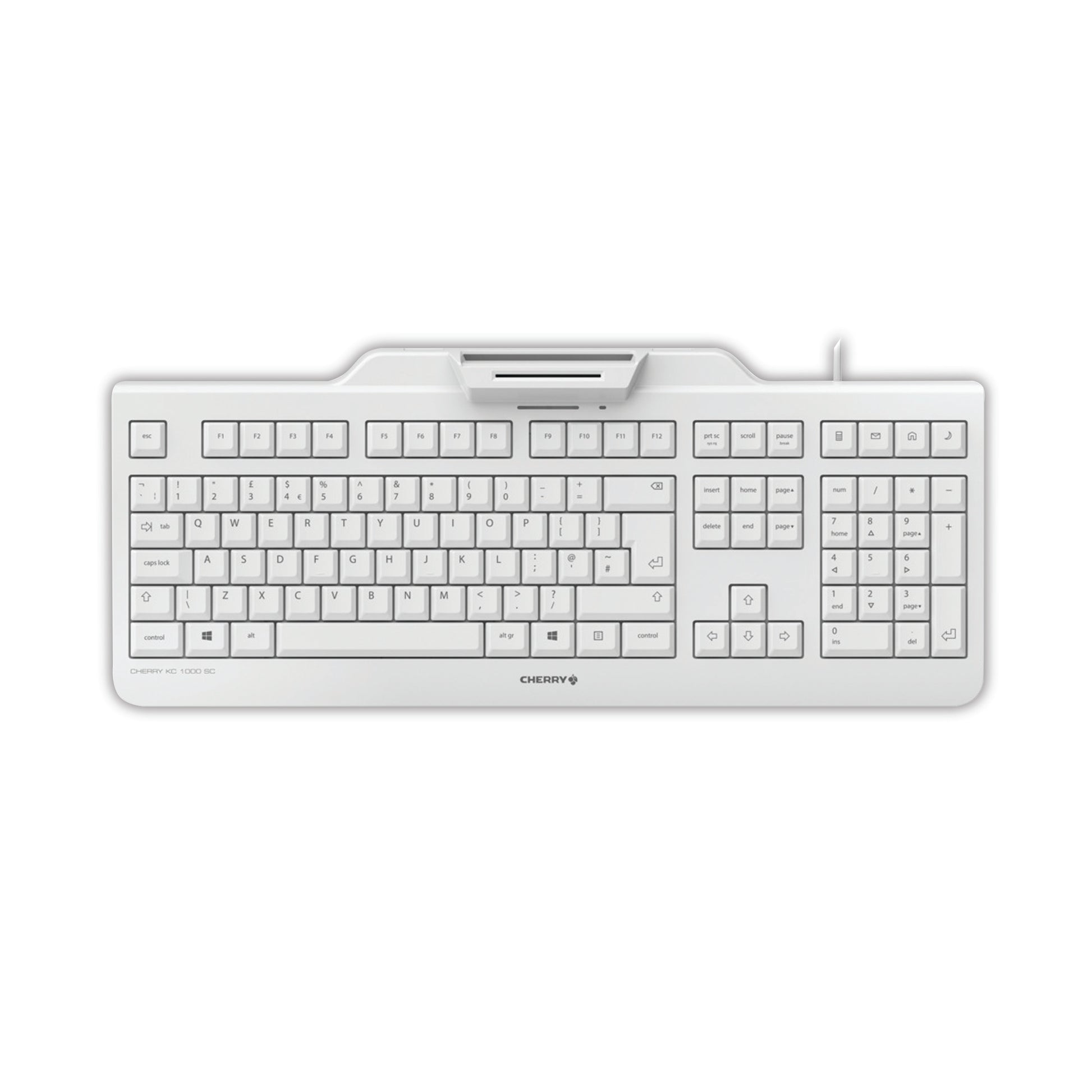 Cherry KC 1000 SC Corded Security Keyboard with Integrated Smartcard Terminal Light Grey JKA0100GB0. Secure PIN entry. PC/SC smartcard reader. CCID compatible. Reading/writing ISO 7816 compliant smartcards. One-handed operation of smart card module.