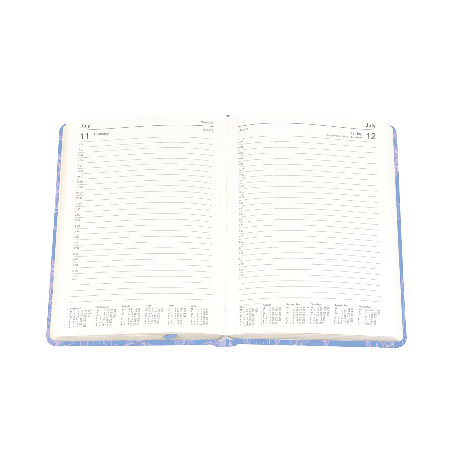 Collins Tara A5 Diary Day Per Page with Appointments 2025 Navy Blue TA151.59-25. 7.30am - 7.30pm - half-hourly. Comprehensive information section. International holidays marked. Space to write details/notes. Bound in Tyvek material - water/tear resistant.