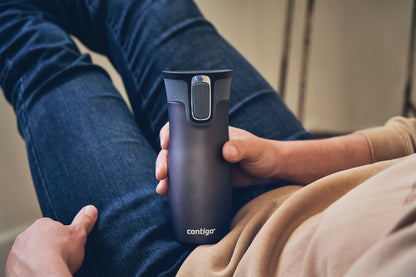 Contigo West Loop Autoseal Travel Mug 16oz/470ml Gun Metal 2095797. Autoseal Technology for on-the-go spill-proof and leak-proof confidence. Push button to drink and release to automatically seal the lid.