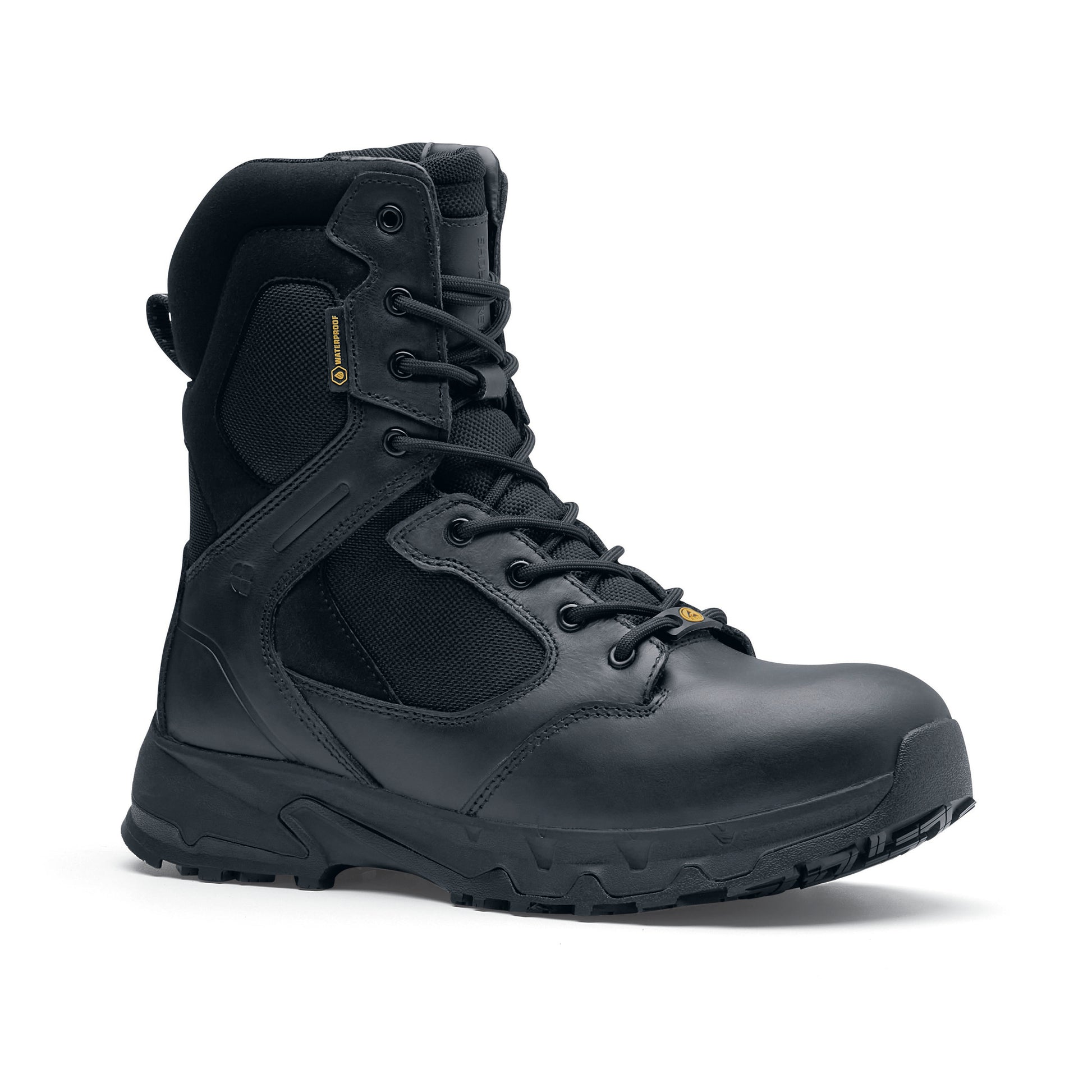 High cut waterproof metal free safety boots with superior slip and clog resistant outsole.TripGuard protection. Resistant to penetration by bloodborne and puncture resistant. Recycled microfibre uppers and EVA insoles. Recycled polyester lining.