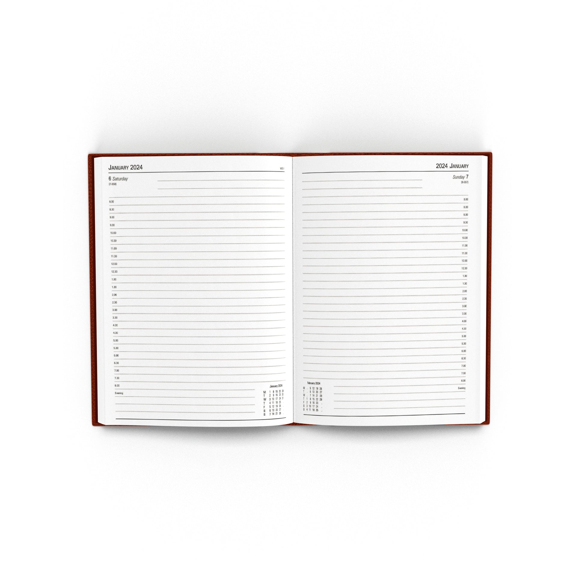 Desk Diary Day Per Page Appointment A5 Burgundy 2024 KFA51ABG24. Reference calendar on each page. Current and forward year planners. Ribbon page marker.