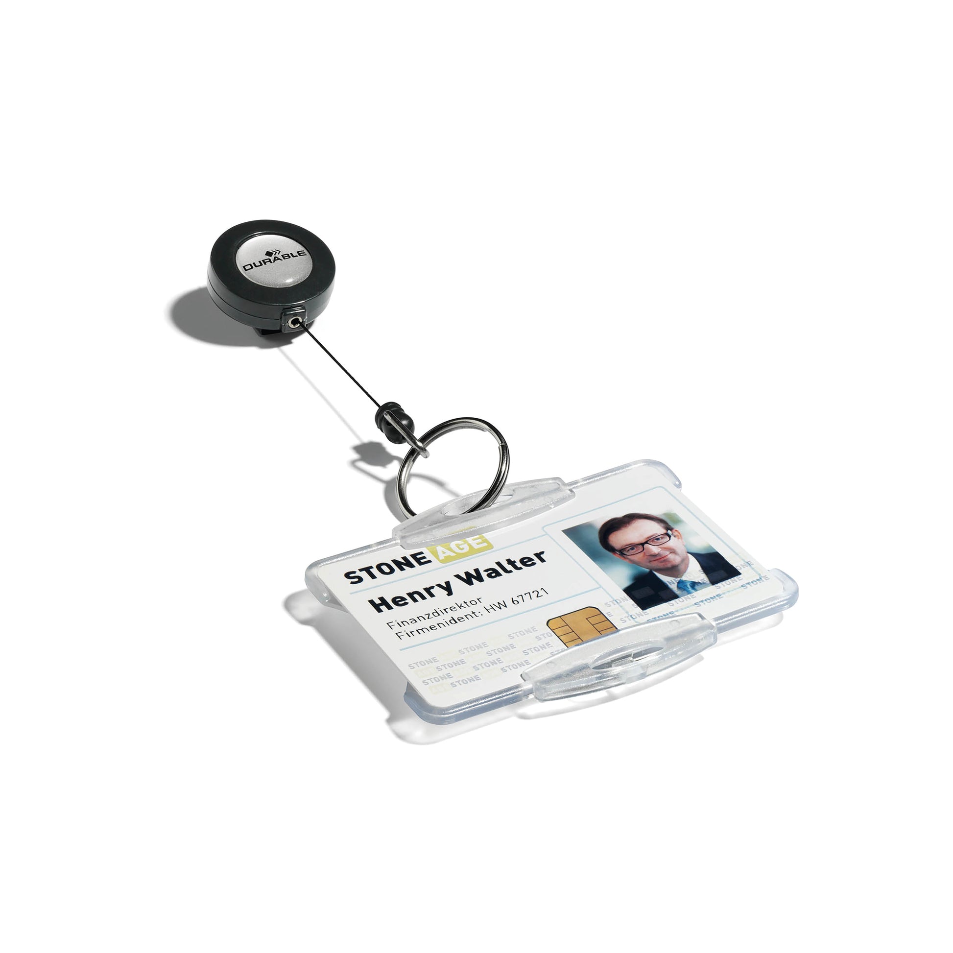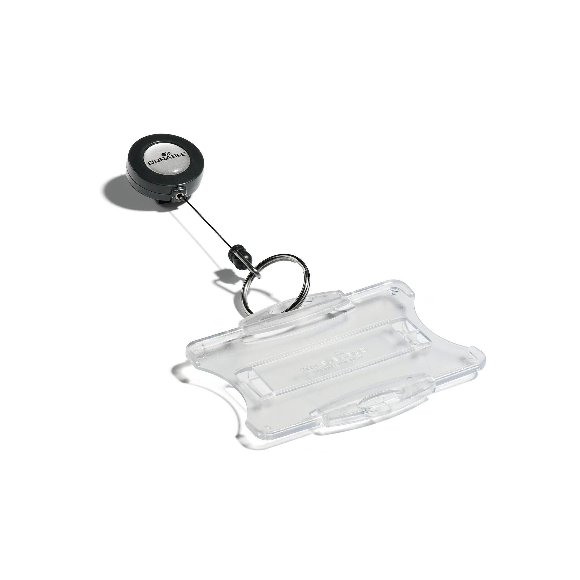 Badge reel with key ring fastener. with a 85 cm retractable cord this badge reel is suitable for holding keys or security cards. Features a crocodile clip fastening on the reverse. Ring diameter 25mm.