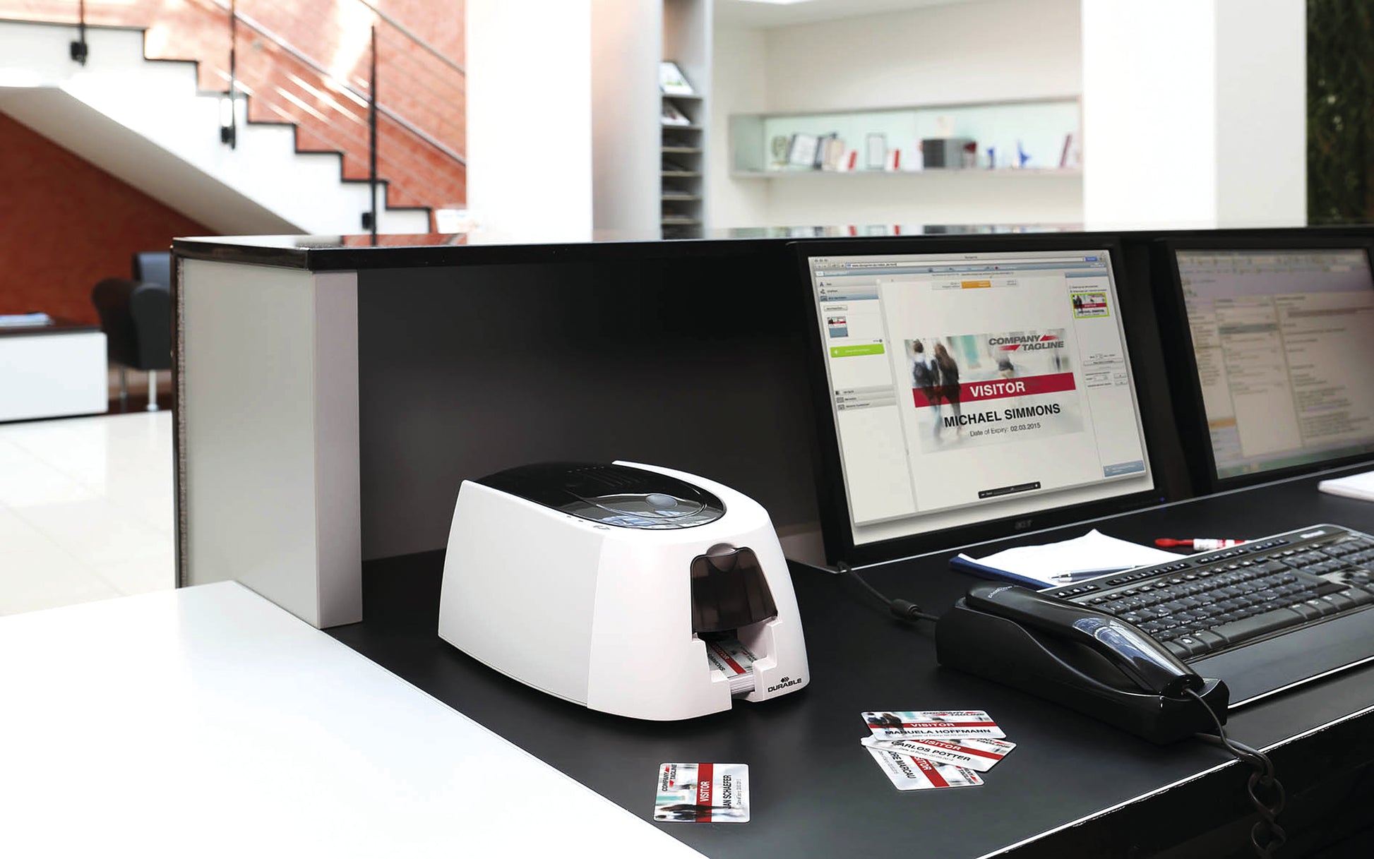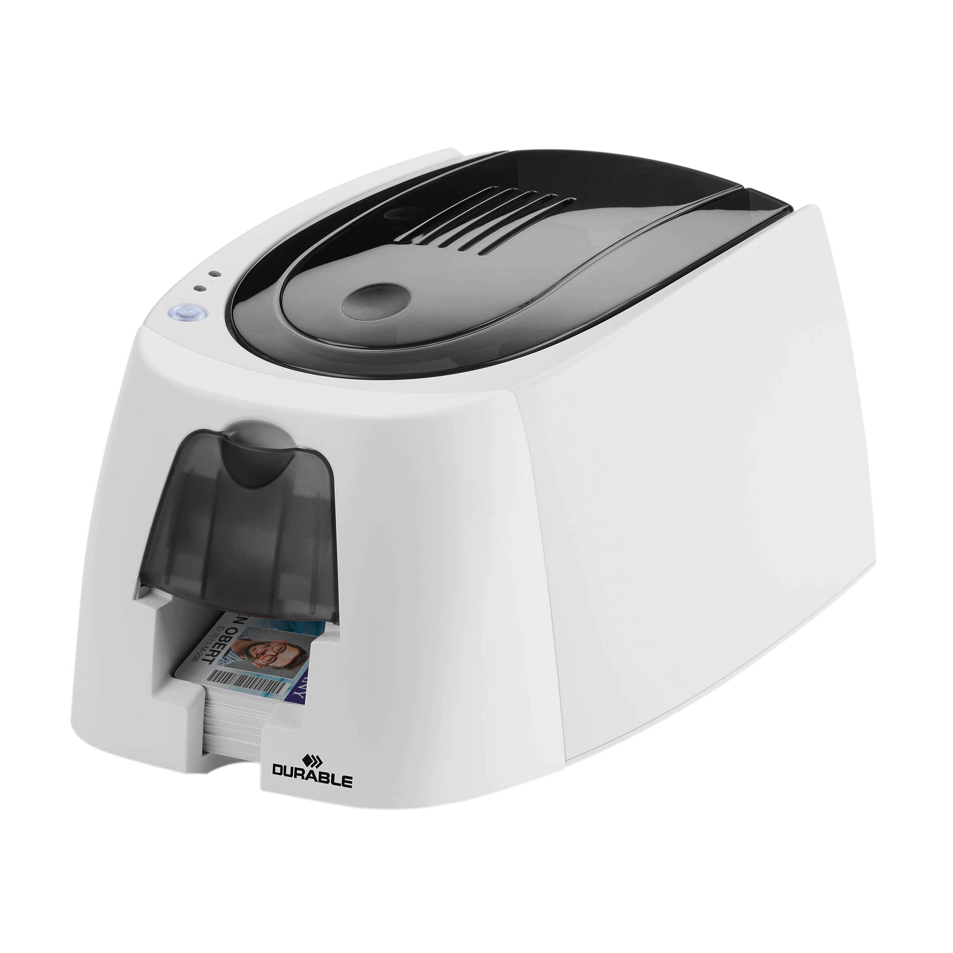 Durable Duracard ID 300 Name Badge Printer 891065. Ideal for ID cards security badges membership cards and much more. Produces photo-quality cards with edge-to-edge coverage. Resolution: 300dpi. Printing speed: 40 seconds per card. 2 year guarantee.