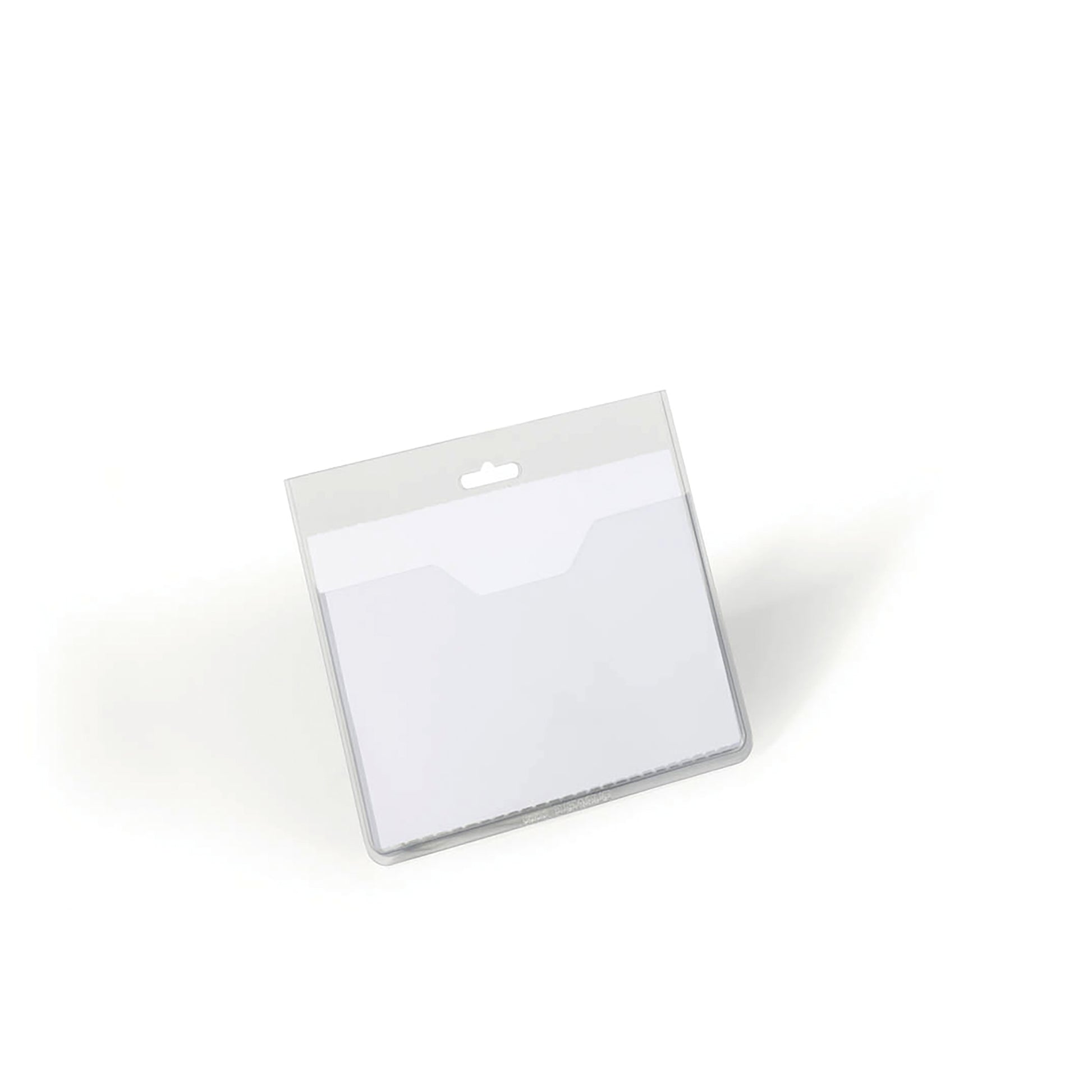 Durable Visitor Badge without Clip Pack of 20 8136/19. Clear PVC badges with blank insert card. Drop level front opening pocket. Punched hole on horizontal edge. 60x90mm. Pack of 20.