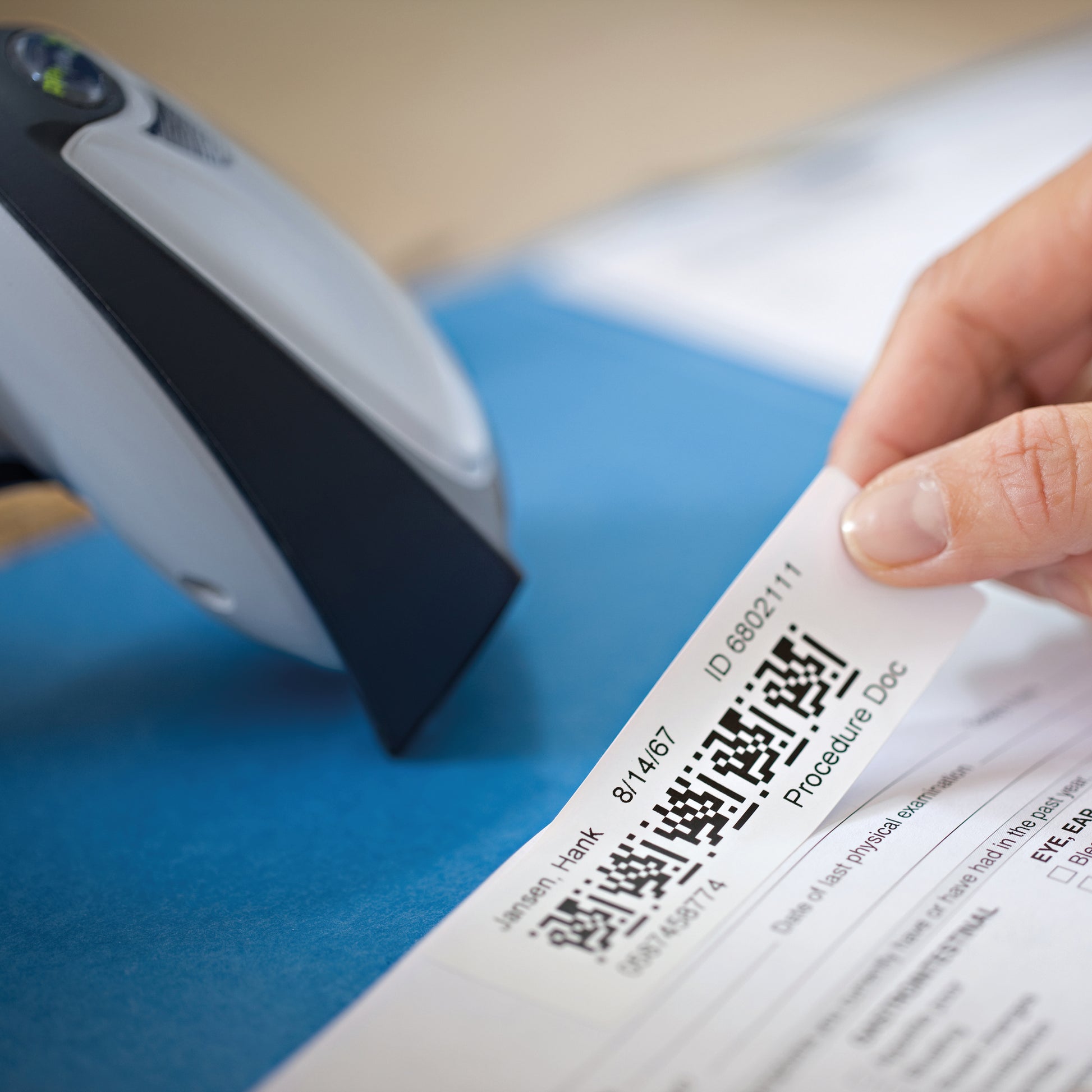 Labels for use with LabelWriter printers. Standard address label format (28 x 89mm). Thermal print paper: no ink required. Self-adhesive for application to surfaces. Compatible with all LabelWriter printers. Colour: White. Pack of 12 rolls.