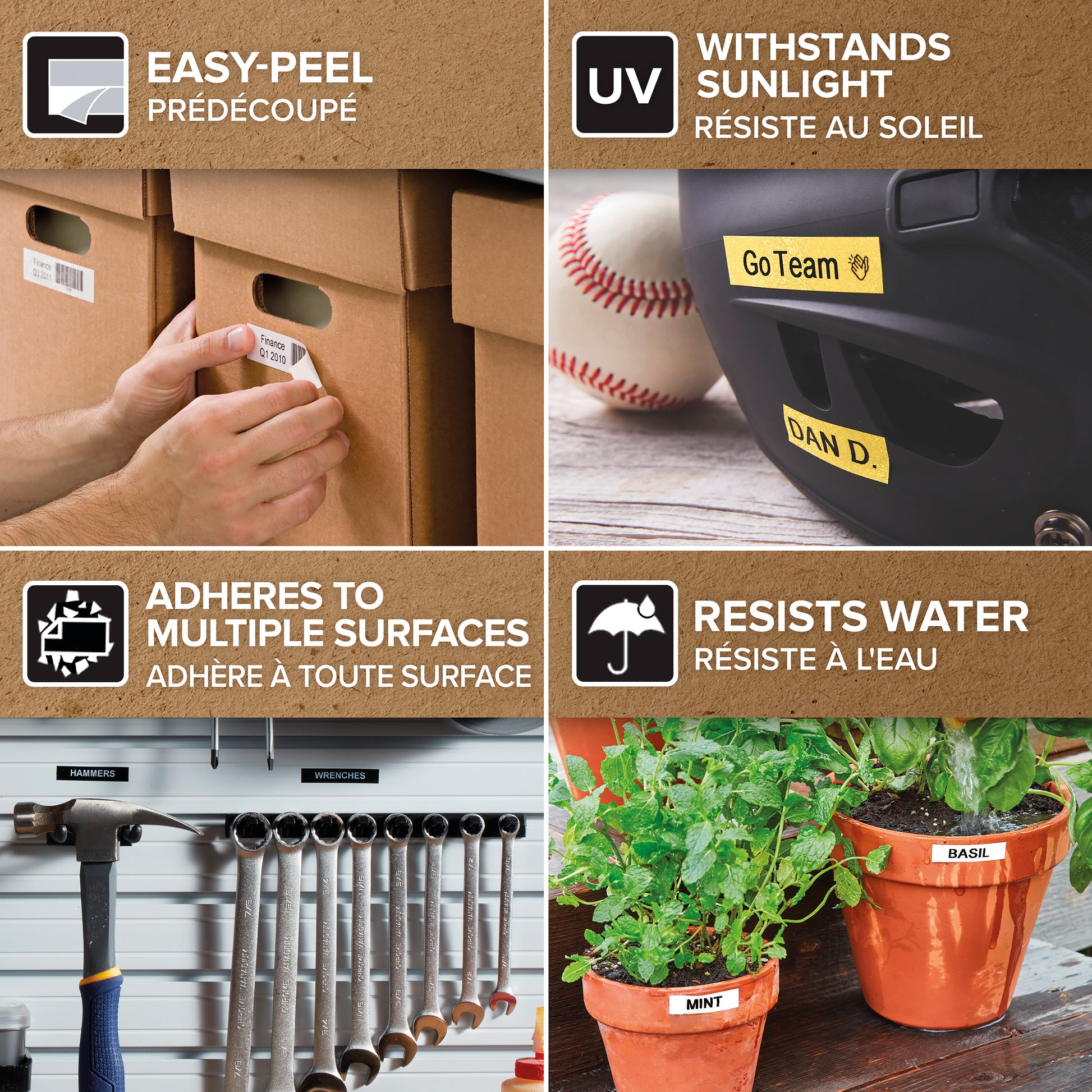 D1 labelling tape. For use with Dymo LabelManager. Made from general purpose polyester. Self-adhesive backing for easy attachment. Prints black text on white background. Width: 12mm. Supplied on a 7m roll. Pack of 10 rolls.