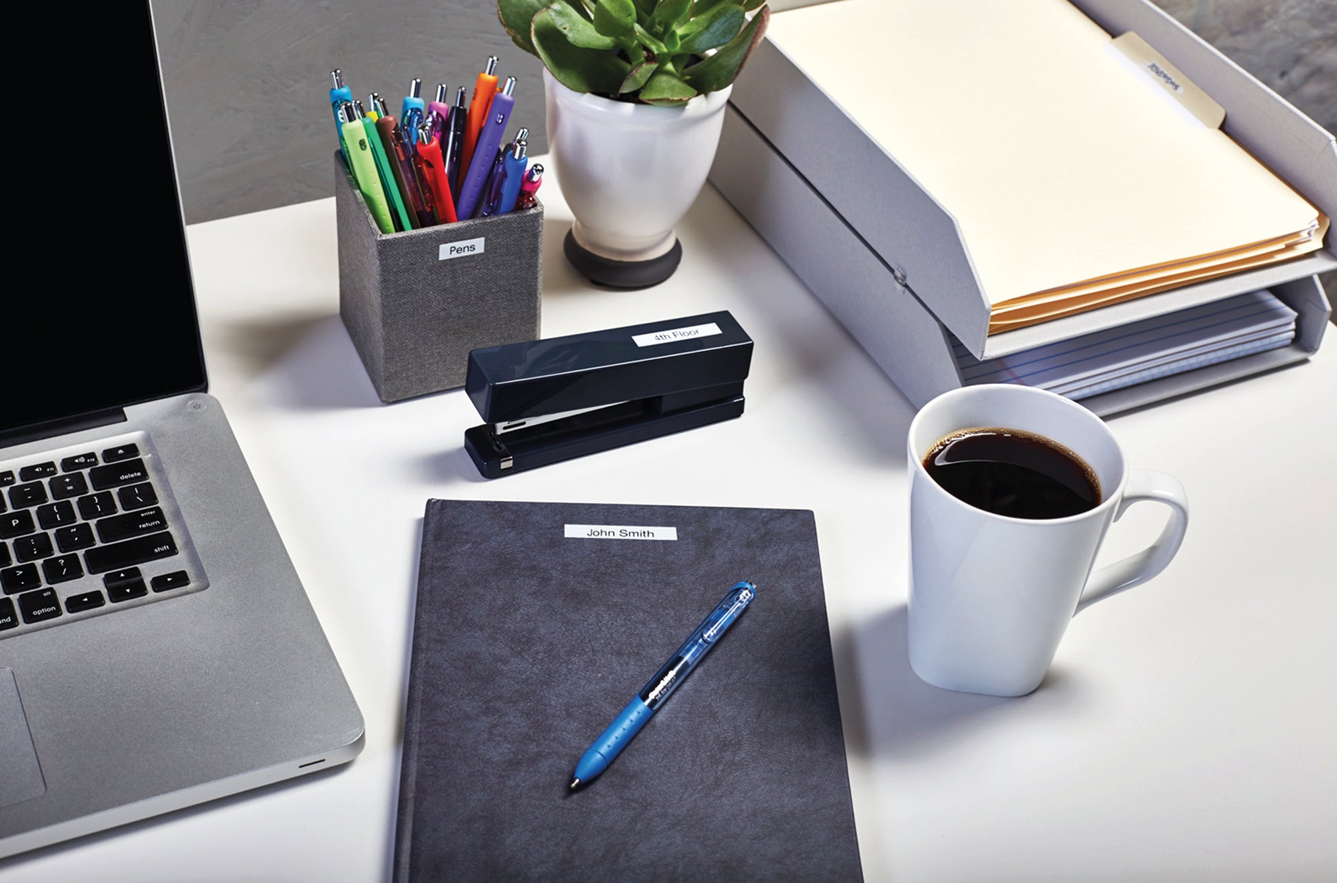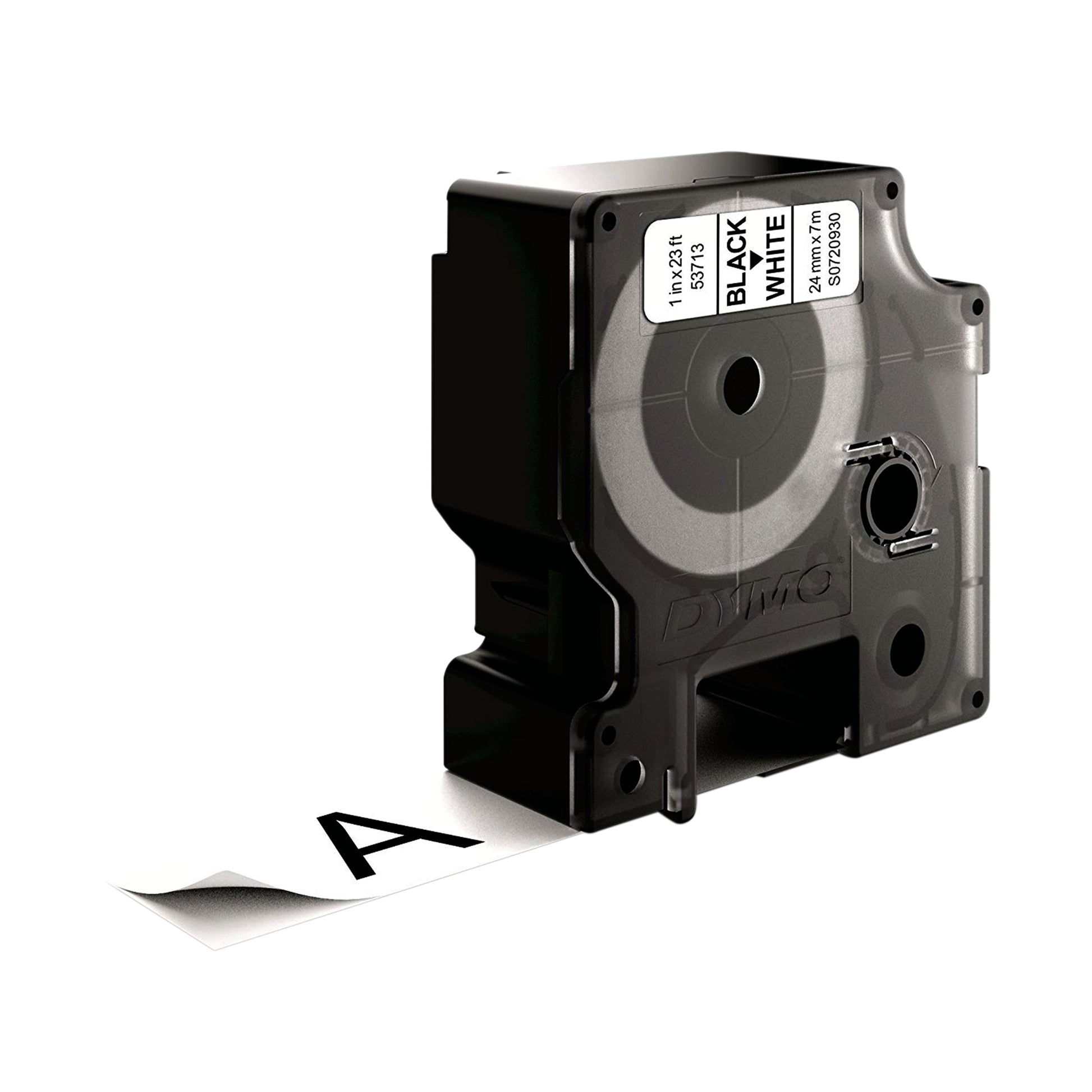 Labelling tape for home and office use. Designed for D1-compatible label makers. Made from general purpose polyester. Self-adhesive backing. Compatible with LabelManager and MobileLabeler printers. Prints black on white. Width: 24mm on a a 7m roll.