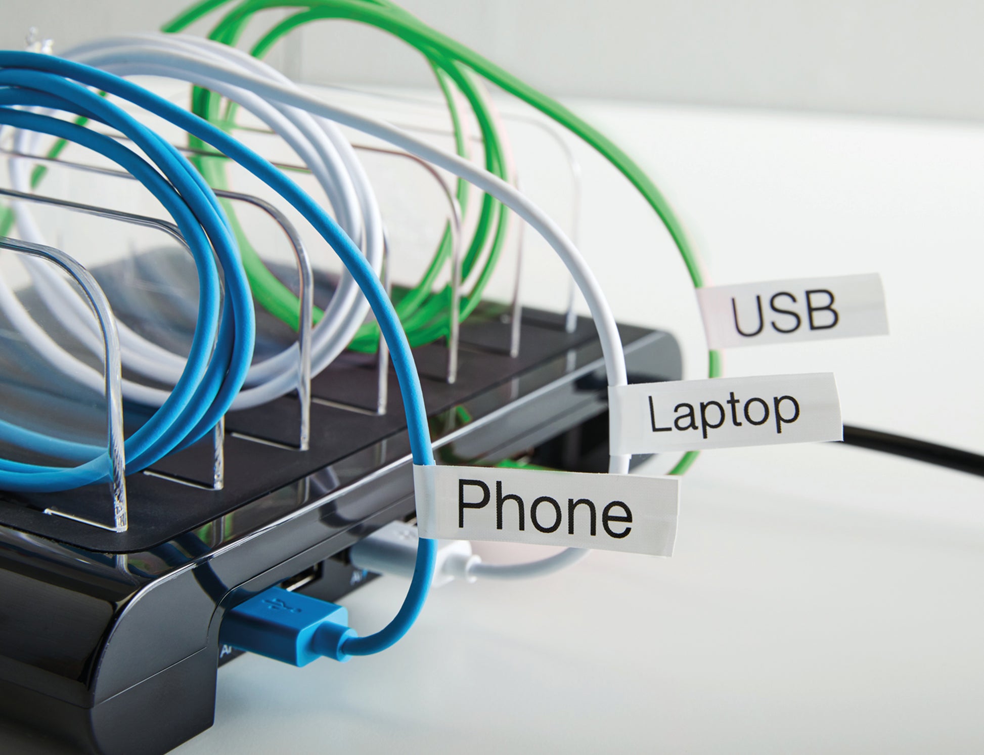 D1 nylon labelling tape. For use with Dymo LabelManager. Made of flexible nylon for curved or uneven surfaces. Permanent adhesive for strong bonding. Prints black text on white background. Width: 12mm. Supplied on a 3.5m roll.