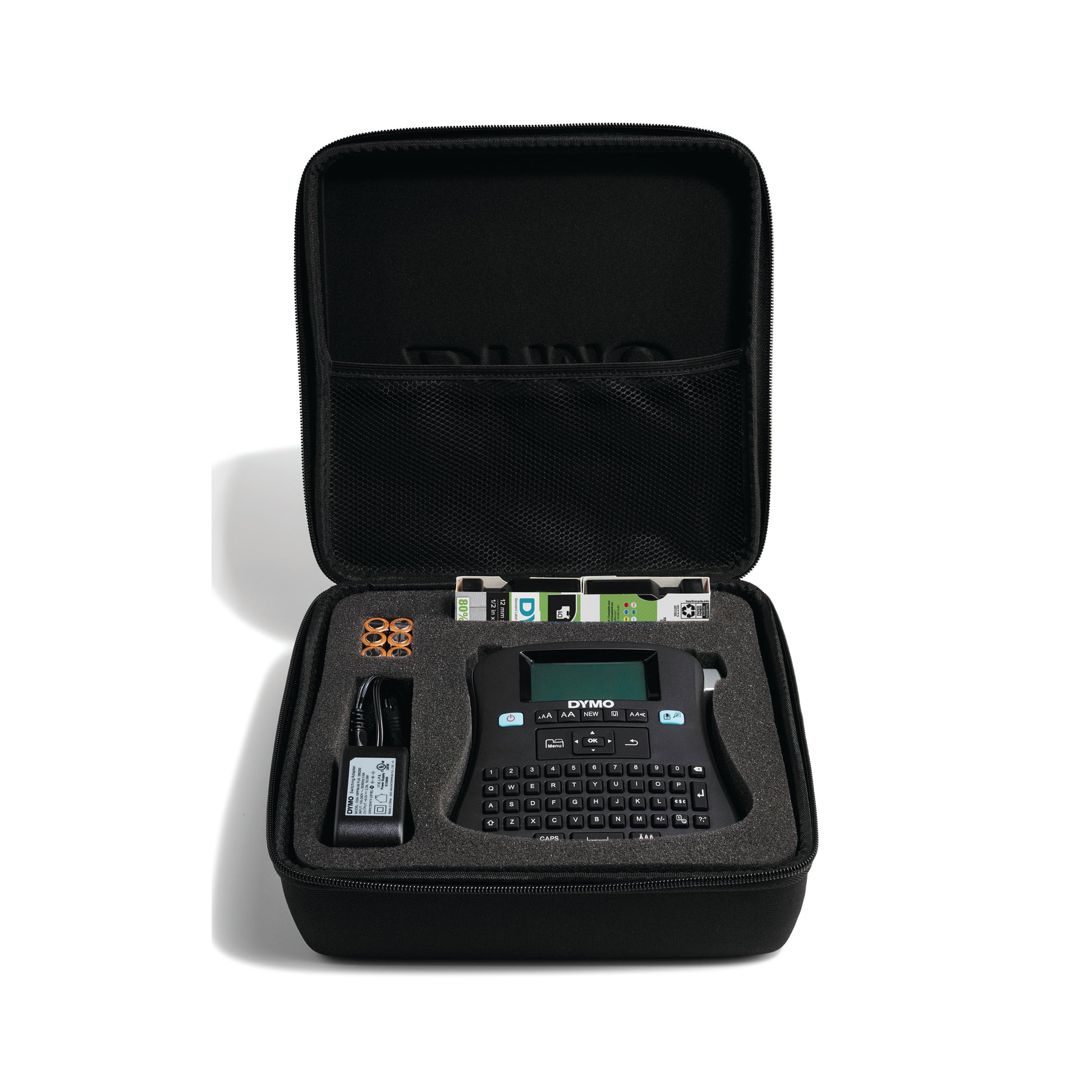 Quick type QWERTY keyboard with easy access buttons. Stores up to 9 labels and prints up to 10 copies of a label. Kit includes: Label printer, D1 label cassette, 2 x AC adapters and storage case.