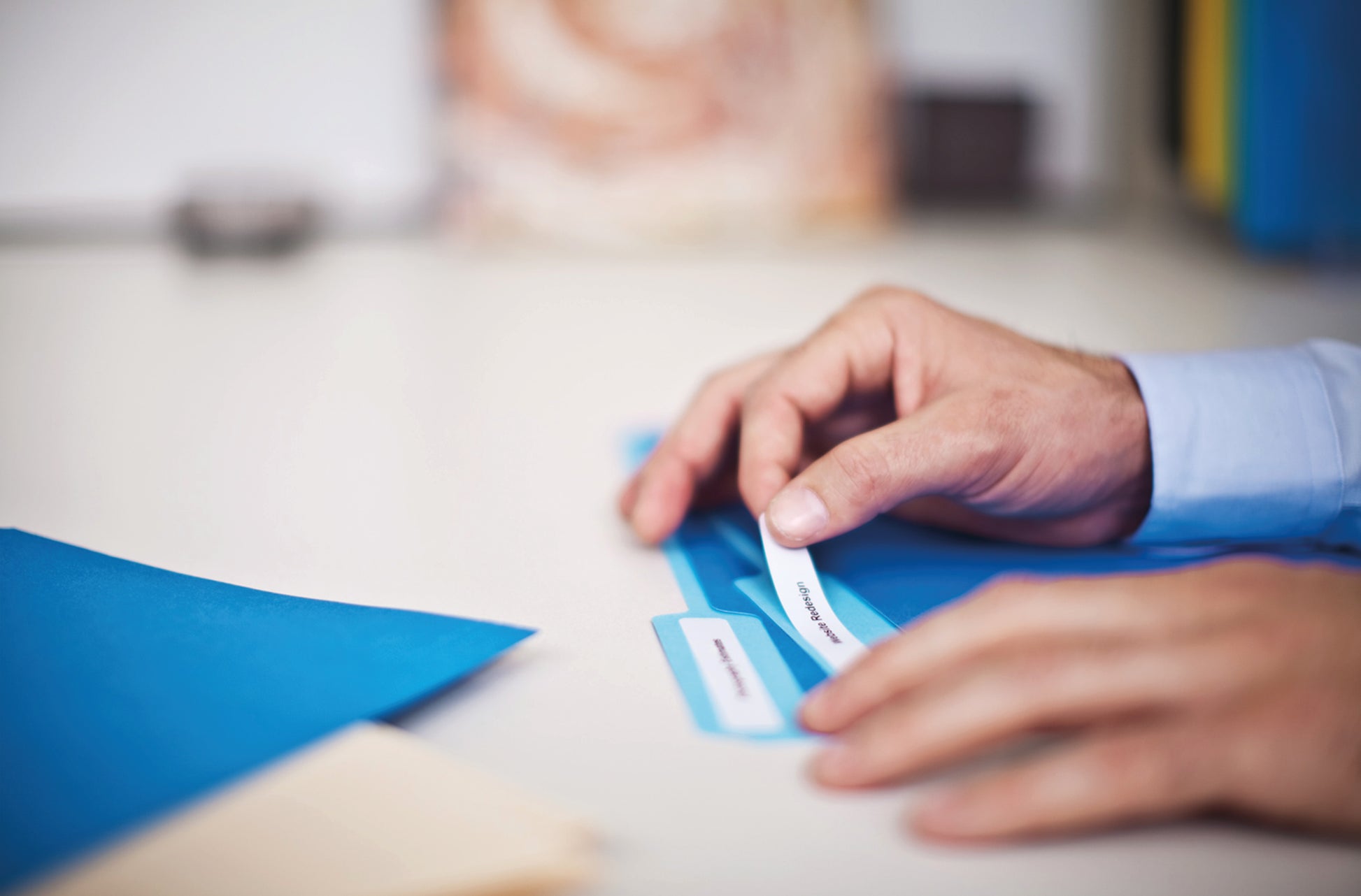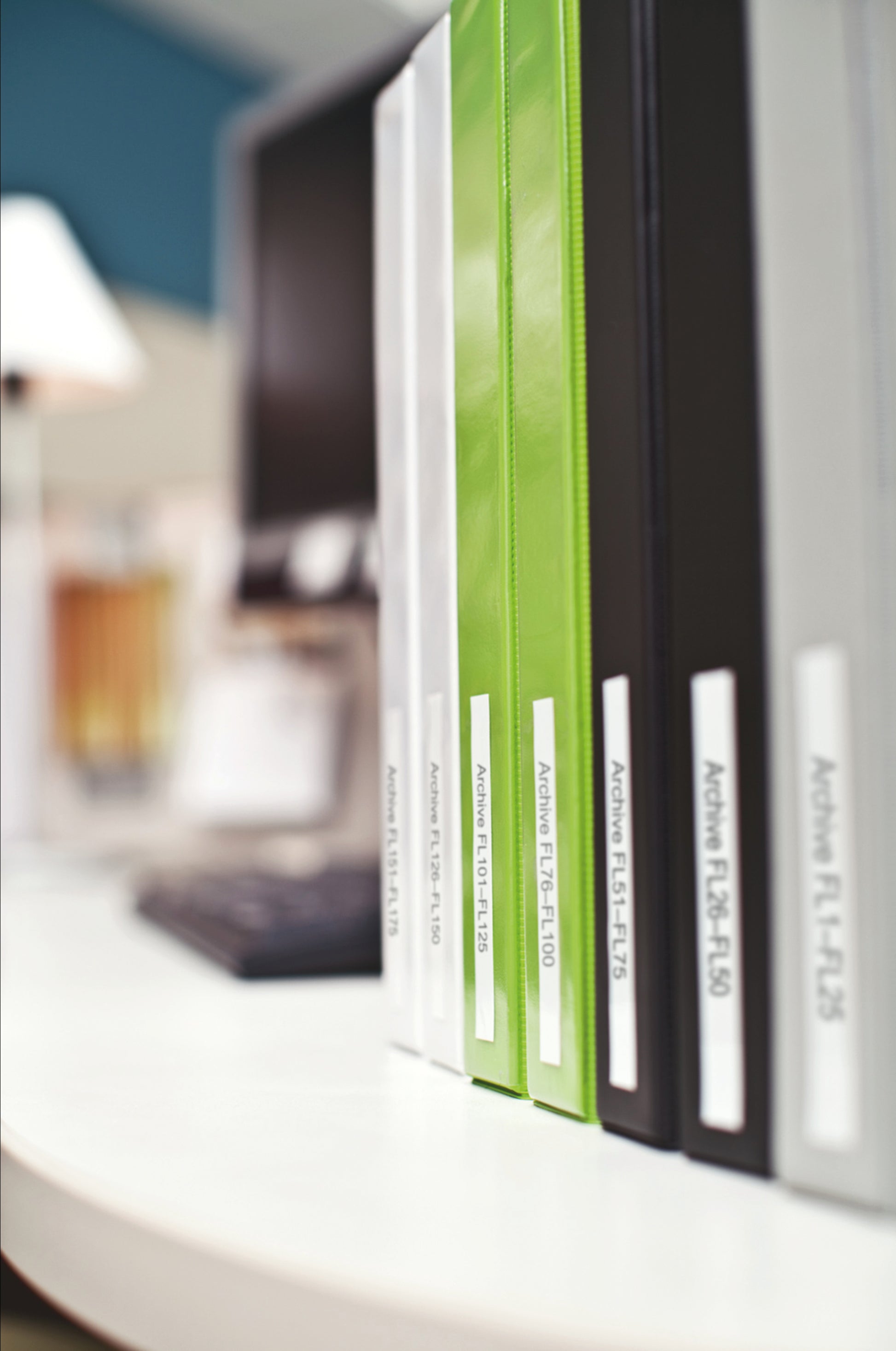 Labels for use with LabelWriter printers. Suspension file format (50 x 12mm). Thermal print paper: no ink required. Self-adhesive for application to surfaces. Compatible with all LabelWriter printers. 220 labels per roll. Colour: White.
