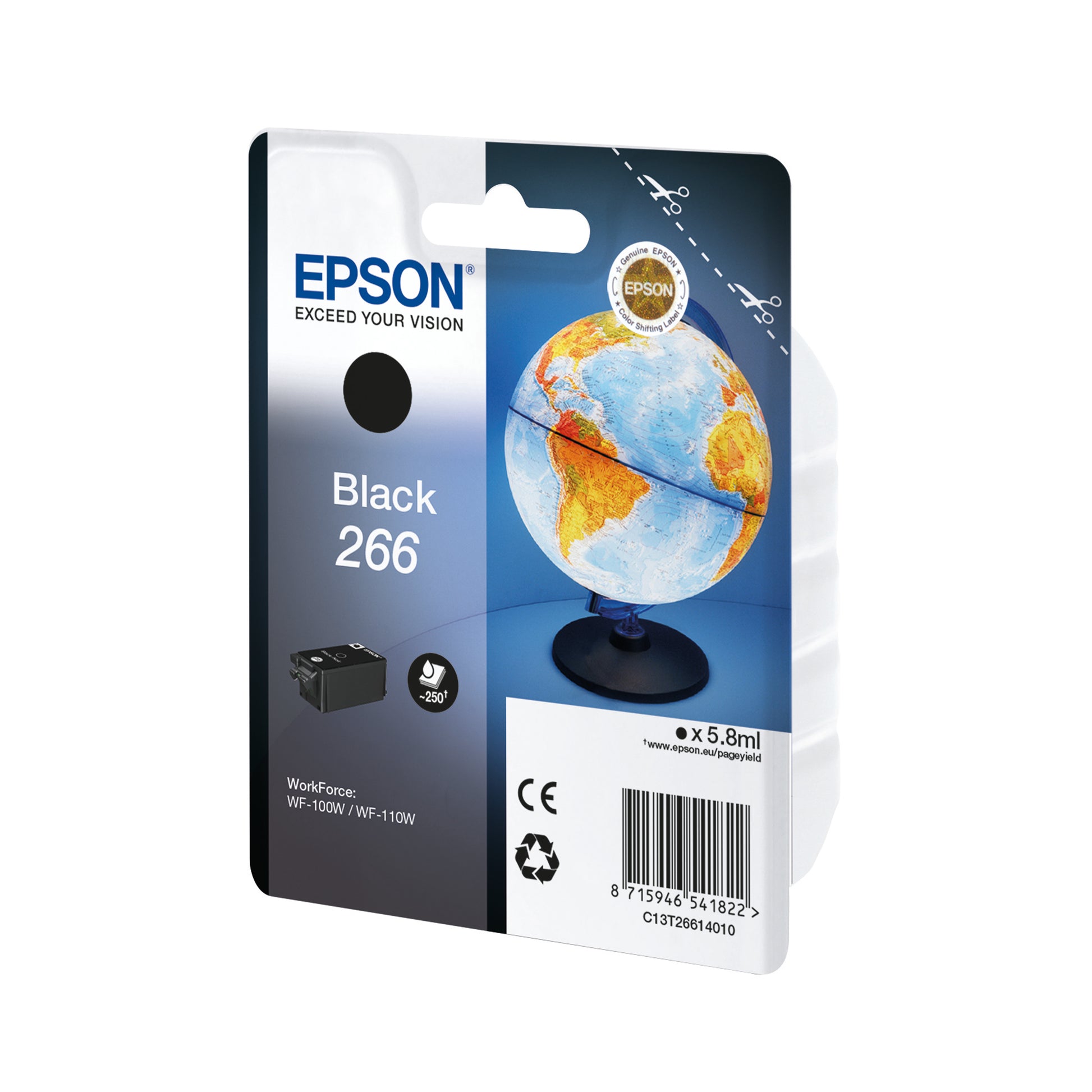 Epson Singlepack 266 Inkjet Cartridge. Compatible with WorkForce WF-100W printers. Colour: Black. OEM: C13T26614010.
