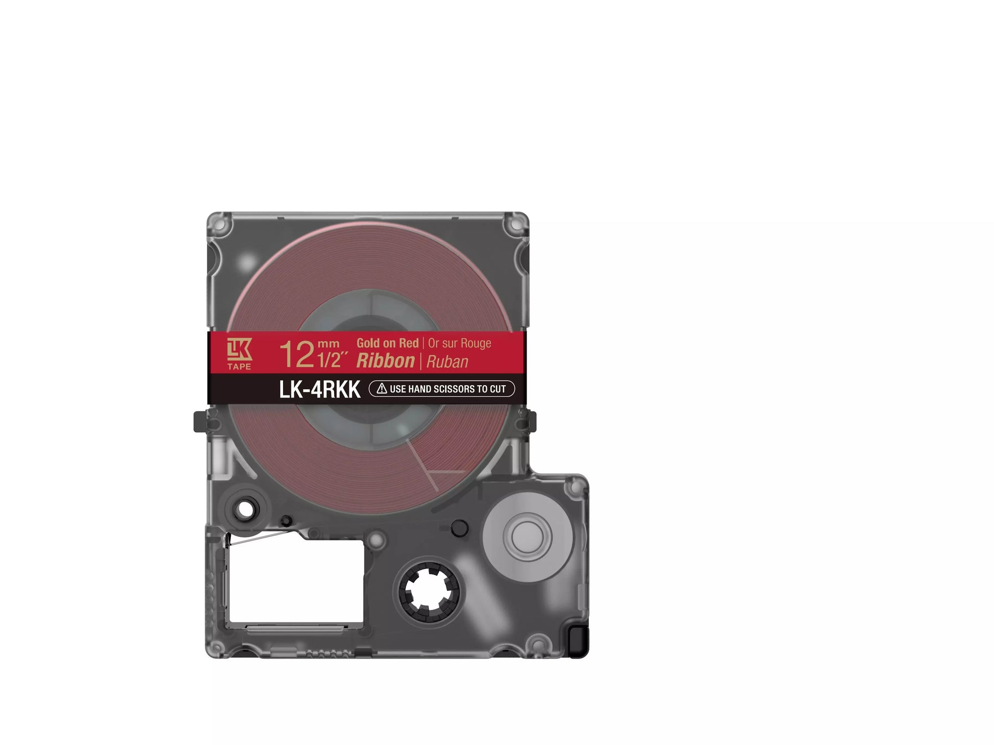 The Epson LK-4RKK Satin Ribbon is a 12mm wide, 5-meter long ribbon with an elegant red background and gold text. Ideal for decorations, gift wrapping, and special occasions, this ribbon adds a luxurious touch to your projects.