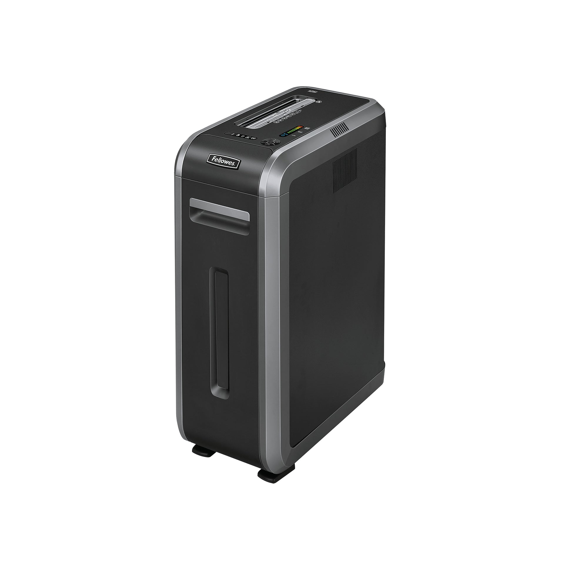 Fellowes Shredder 125i Strip Cut. Shreds 18 sheets into 5.8mm strips. SilentShred and Safesense Technology. Energy savings system. Extended run time of 45 minutes for high volume shredding. 49 litre pull-out bin. Security level 2.