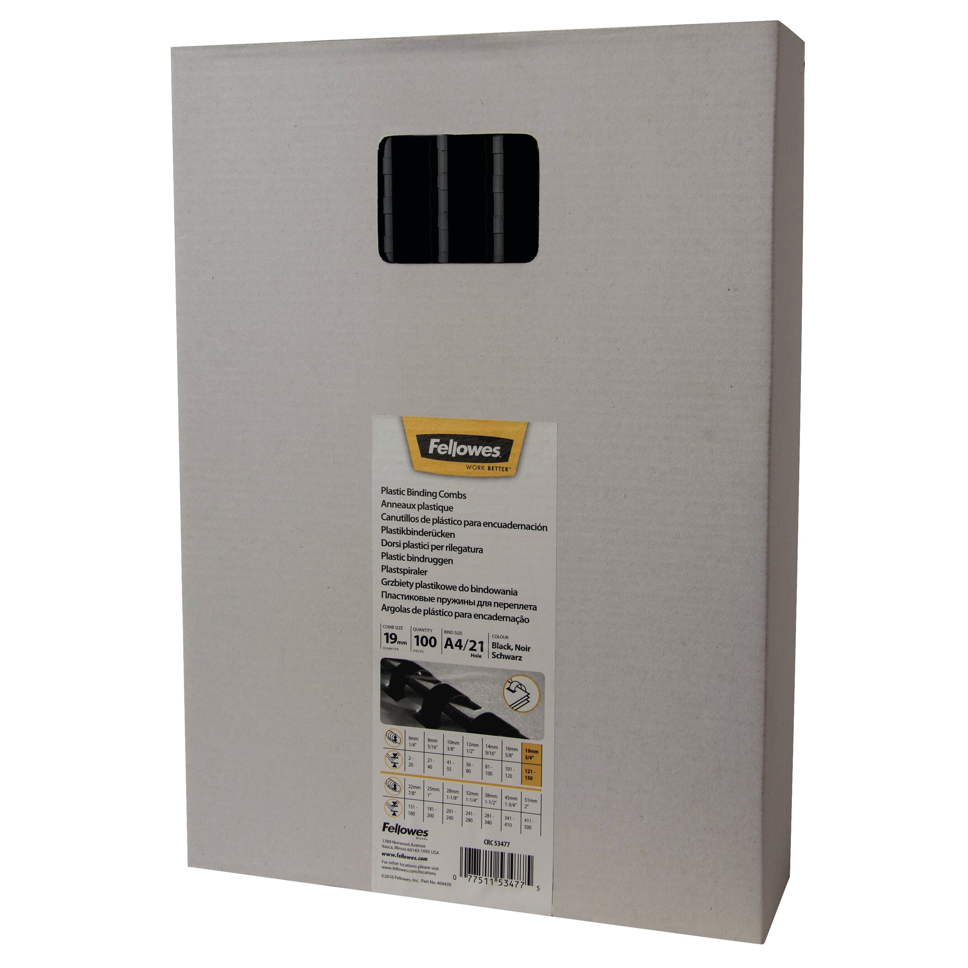 Binding combs for professional-looking bound documents. Ideal for presentations projects and sales pitches. Suitable for any 21-ring comb binding machine. Use with A4 plastic covers. Colour: Black. Capacity: 19mm (121-150 80gsm pages). Length: 30cm.