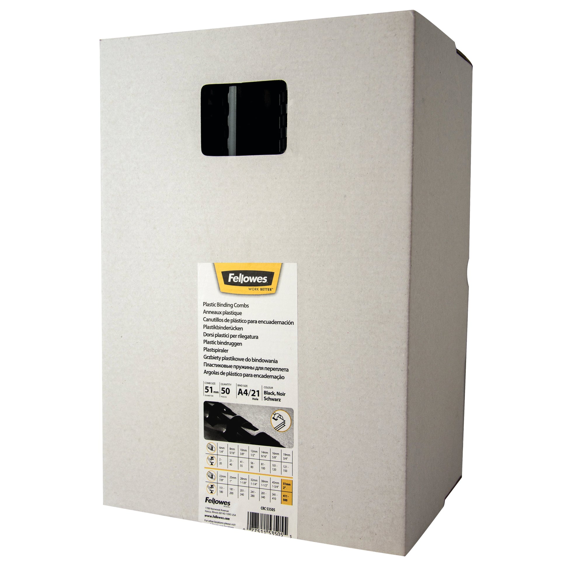 Fellowes Plastic Binding Combs 21 oval ring with a comb length of 30cm. Colour - Black 51mm (411-450 80g sheet capacity). Pack 50.