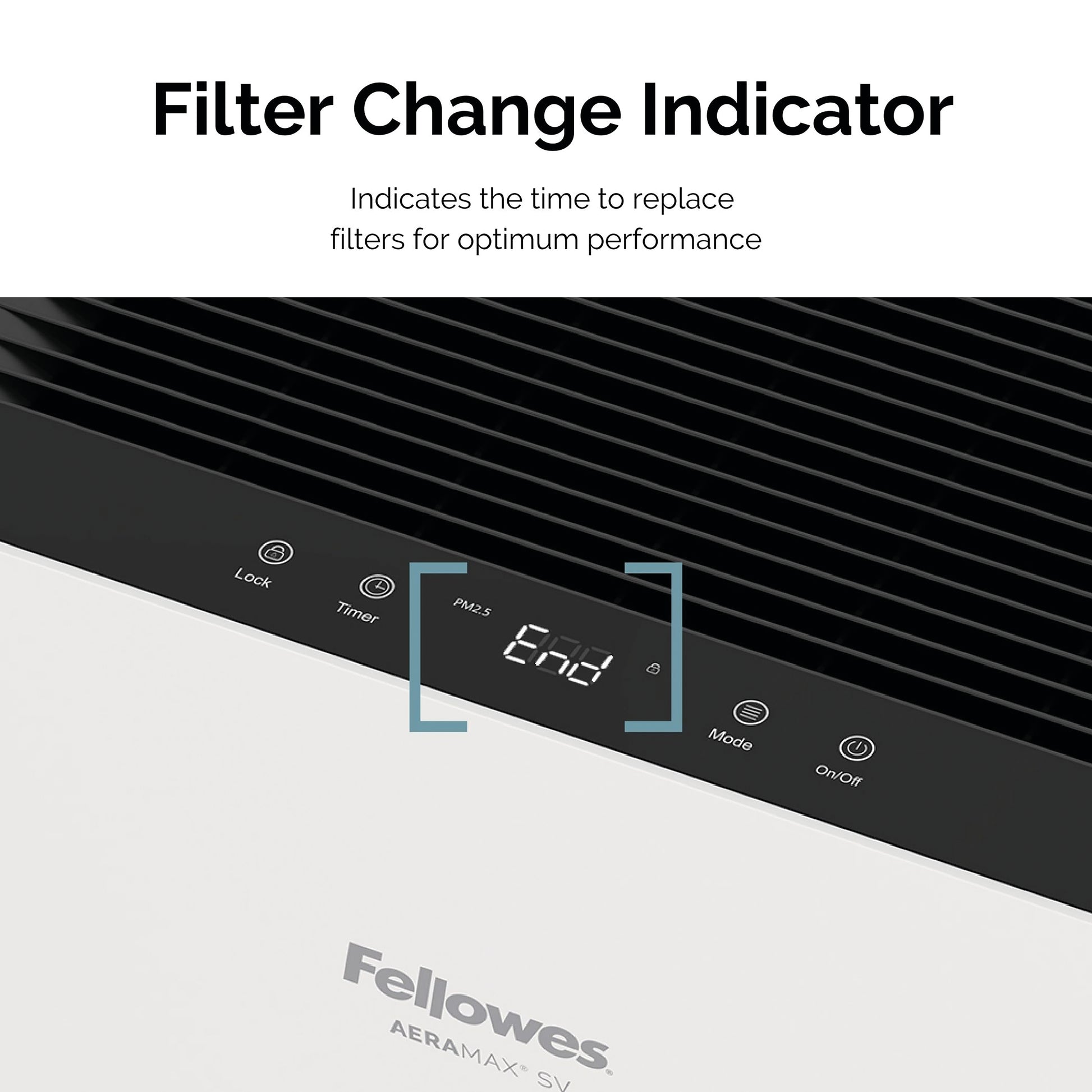 Fellowes AeraMax SV Combo Filter (Pack of 2) 9787902. 1 filter 3 functions. Combined H13 HEPA, Carbon Filter + separate pre-filter. Pre-filters are washable. H13 HEPA Filtration. Captures up to 99.95% of particles as small as 0.1 microns.