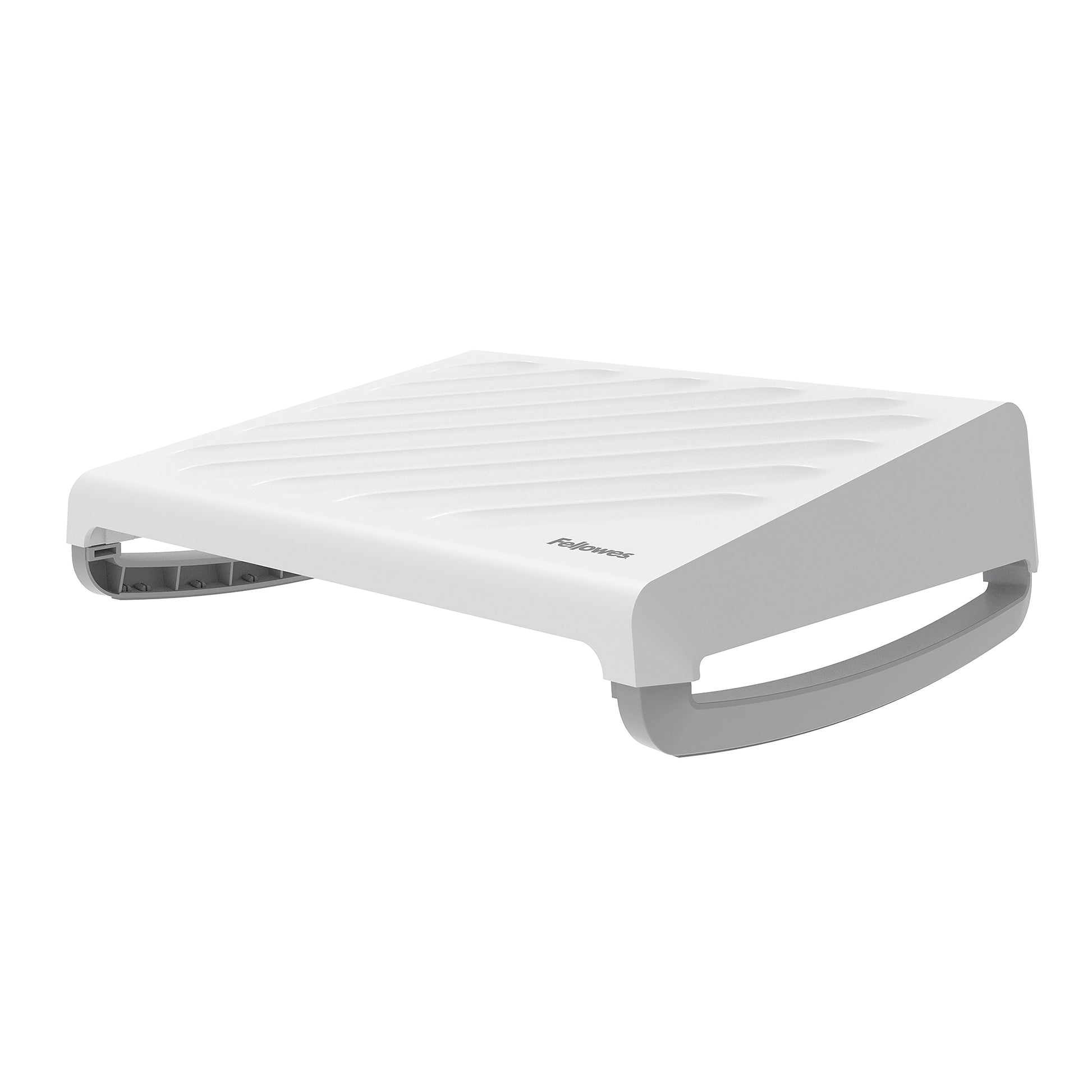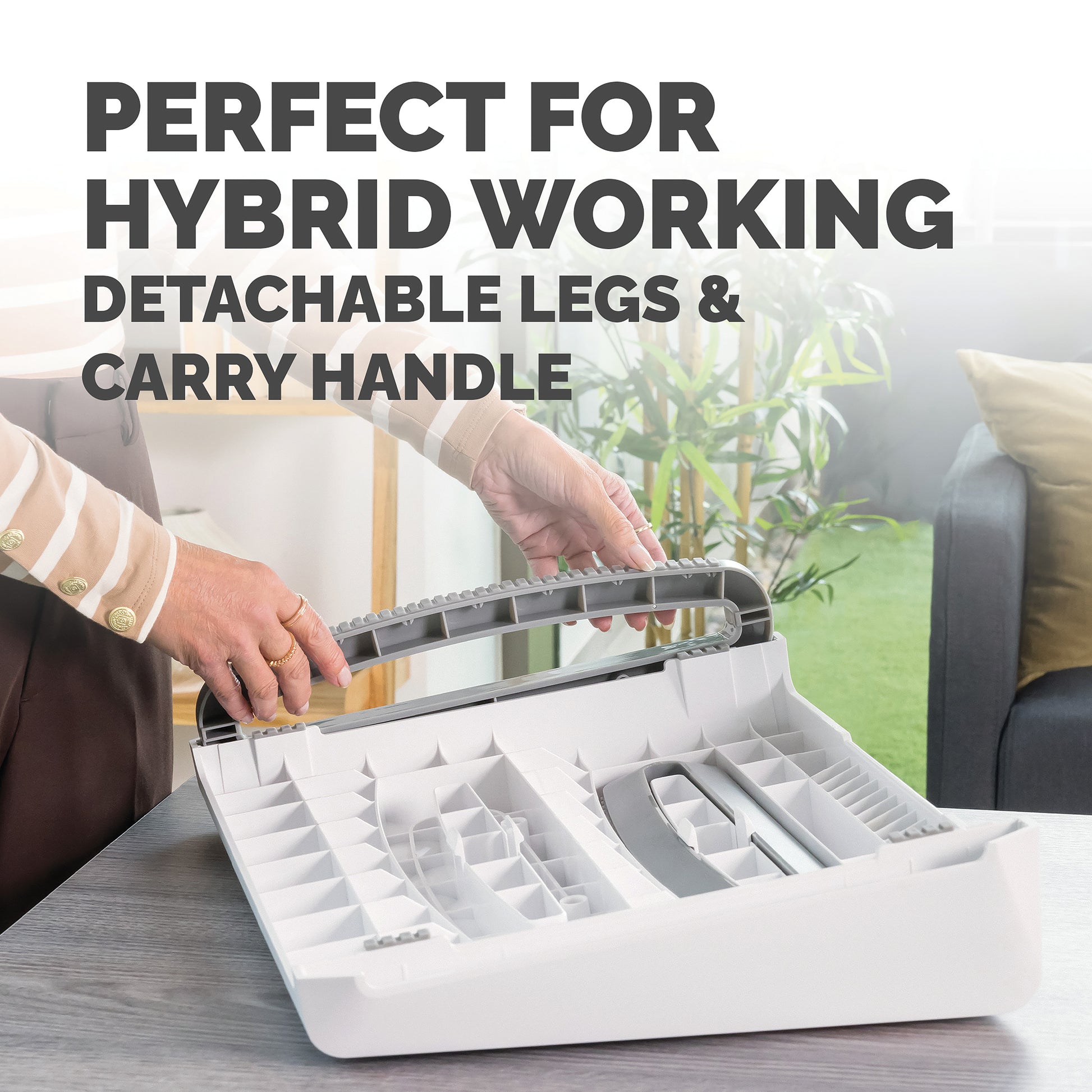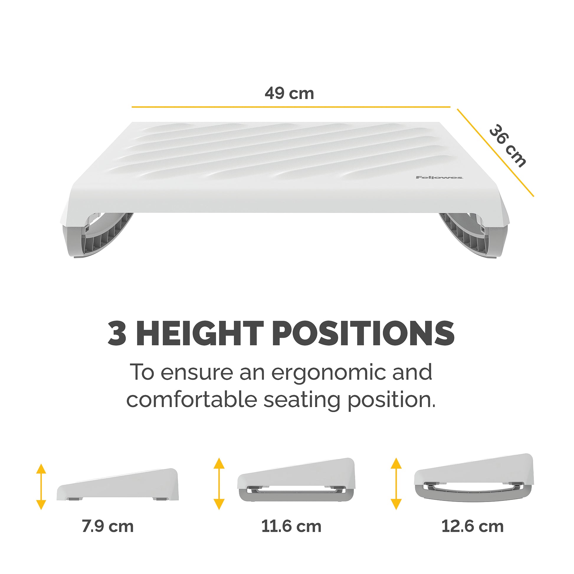 Fellowes Breyta Footrest White 100016563. Easy to set up, adjust and store away. Ideal for hybrid working. 3 height adjustments. Legs clip in underneath platform when not in use for easy storage. Rocking option to increase movement and circulation.