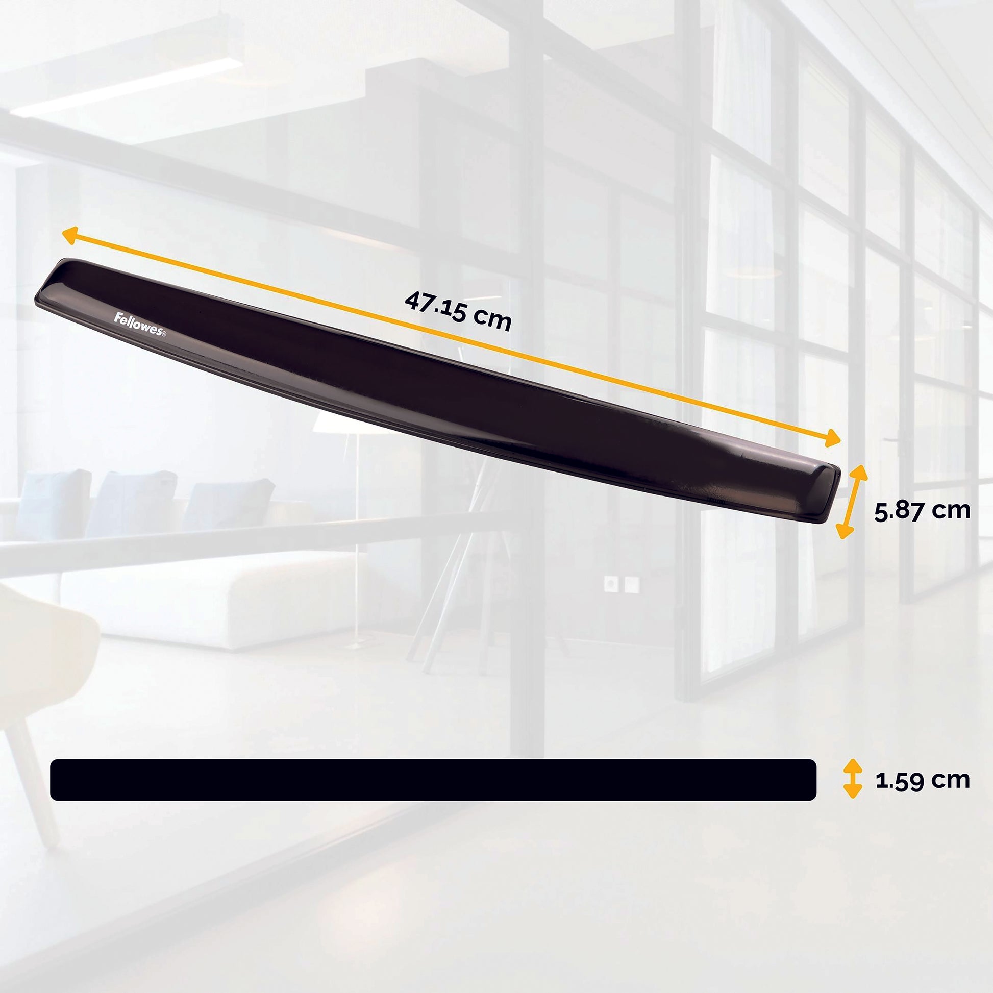Fellowes Crystal Keyboard Wrist Rest. Ergonomically designed transparent crystal gel rest designed to cushion and support pressure points alleviating stresses and strains when using a keyboard. Size: 59x487x24mm. Colour - Black.