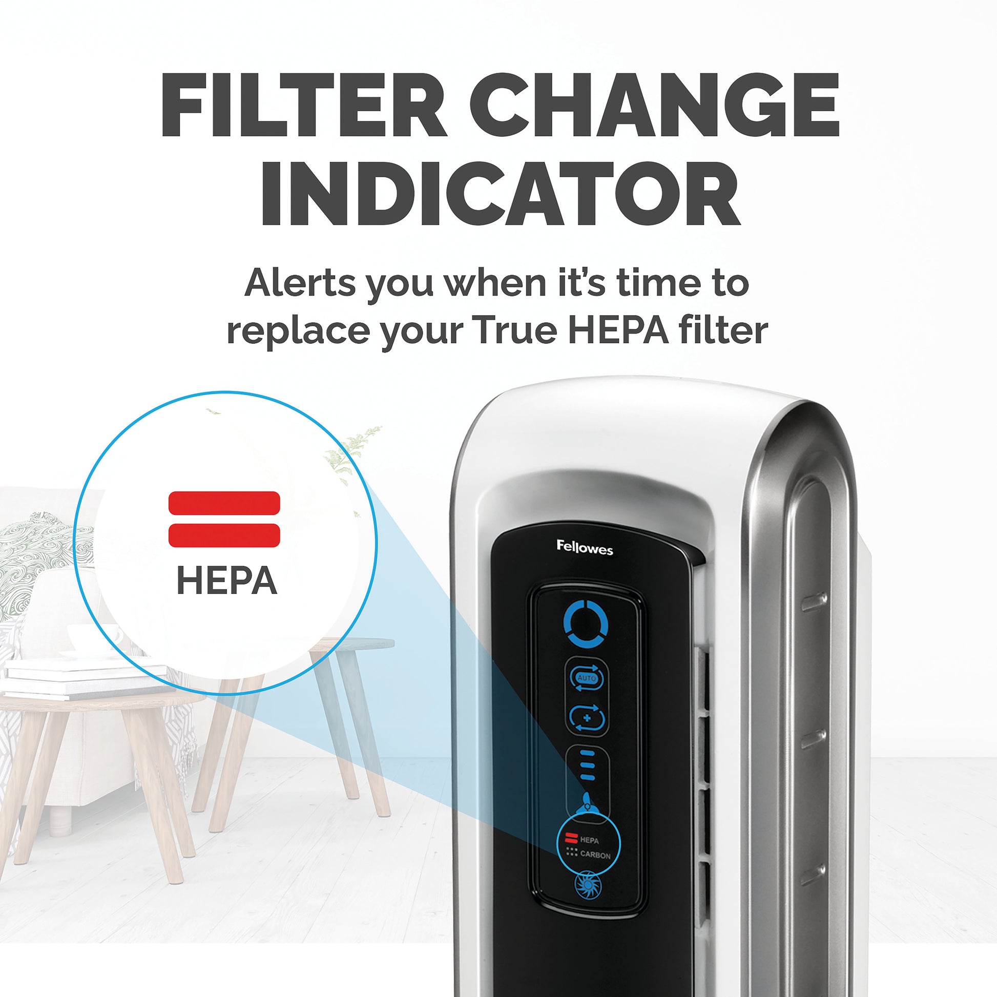 Fellowes DX Hepa Filter 9287001. Catches 99.7% of all airborne particles. Catches impurities up to 0.3 microns. Perfect for people who suffer from respiratory problems. Helps prevent the spread of disease. Filter needs replacing every 12 months.