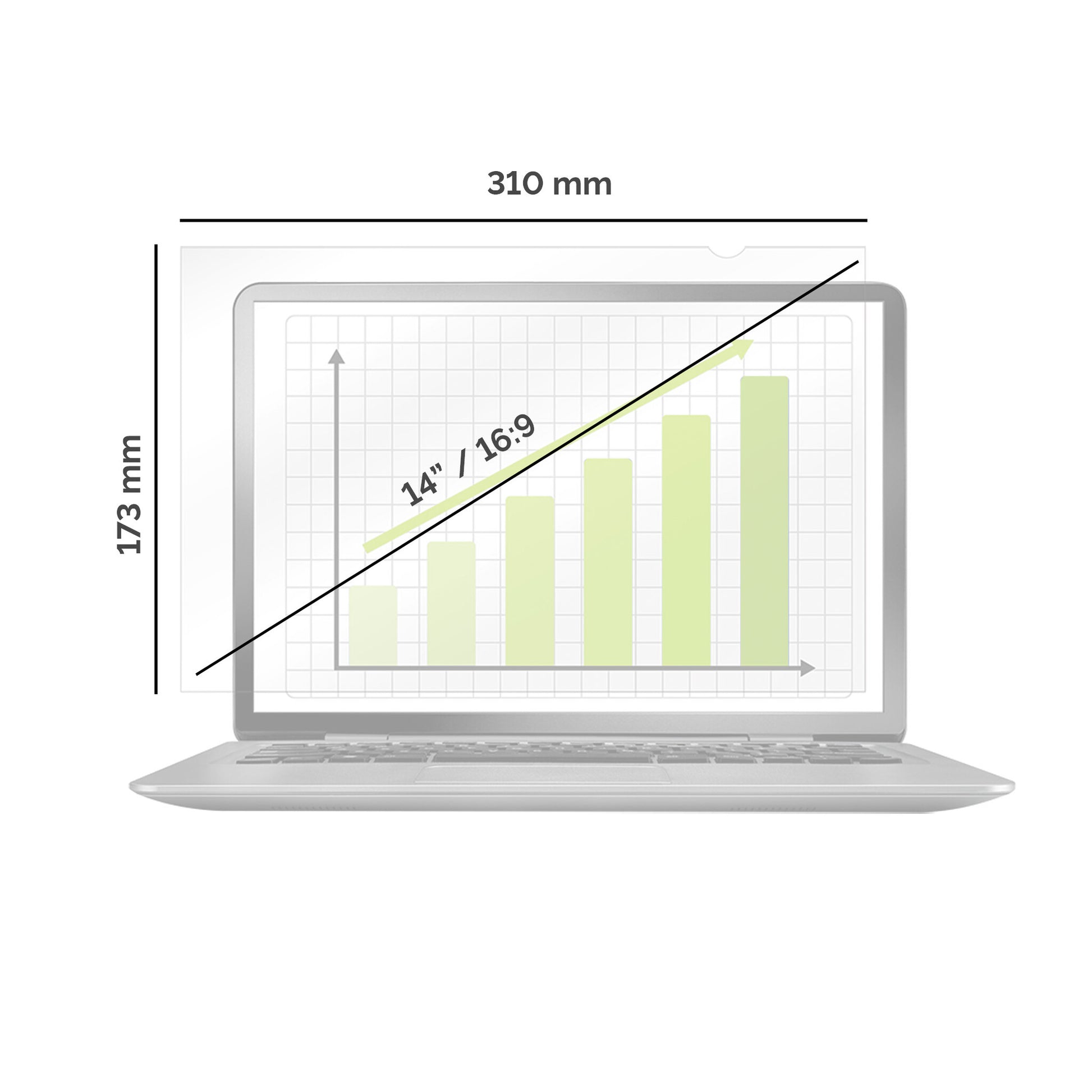 Whilst maintaining a crystal clear screen from the front of your laptop, the Fellowes blackout privacy filter has the ability to black out your computer screen from a 30° side angle in order to protect your laptops on screen content simply and easily. This blackout privacy screen features two options for attachment, including double sided adhesive strips and the innovative Quick Reveal Tabs which offer a fast and easy way to remove and reattach your monitor or laptops privacy filter when you want to share your screen with colleagues. Not only does the Privascreen privacy filter shield your computers on screen information from prying eyes - the privacy screen also acts as a screen protector, protecting your laptop / monitor screen from scratches and fingerprints. To prevent eye strain, the Privascreen blackout privacy filter also features a reversible option, which offers a matte side of the filter that helps to reduce glare on your monitor or laptop screen. This privacy screen fits 14" inch monitors or laptops with a standard aspect ratio of 16:9.