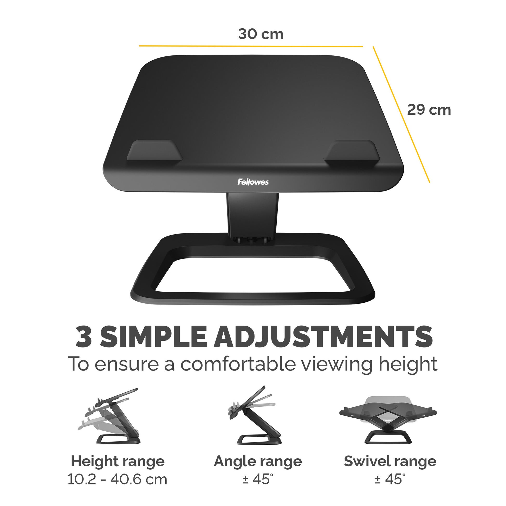 Elevate your work experience with the Hana LT laptop stand. Enjoy unparalleled ergonomic comfort with effortless finger touch infinite height adjustments. With its robust design, it securely holds laptops up to 19 inches and 4.5kg, providing stability and peace of mind. Effortlessly raise your laptop screen to eye level and reduce strain on your shoulders, neck, and eyes with simple adjustments, making work stress-free, and offers easy collaboration with colleagues. Keep your desk space clutter free with the laptop stands built-in cable management system. Elevate your workspace and comfort with the Hana LT laptop stand and experience a new level of productivity and well-being while you work. This laptop stand has been tested by FIRA International Ltd to comply with the ergonomic requirements set out in the European Health and Safety Legislation: EN ISO 9241-5 and is built to last with a 5-year extended warranty, and access to the best customer service to help with any queries you may have.