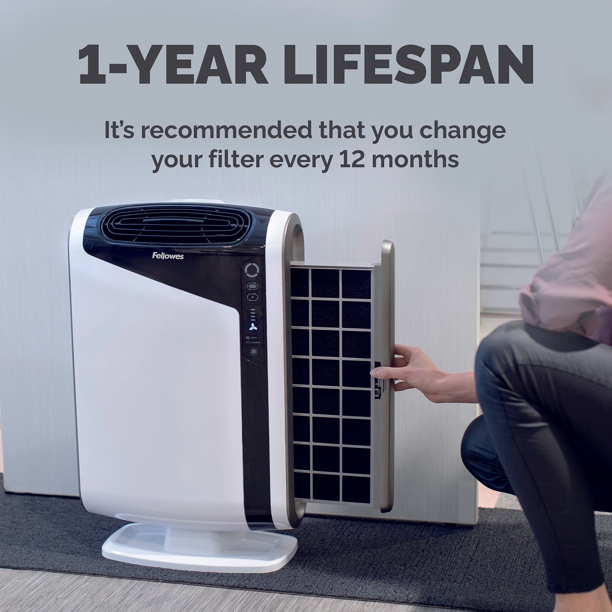 Catches 99.7% of all airborne particles. Catches impurities up to 0.3 microns. Perfect for people who suffer from respiratory problems. Helps prevent the spread of disease. Filter needs replacing every 12 months for optimum performance.