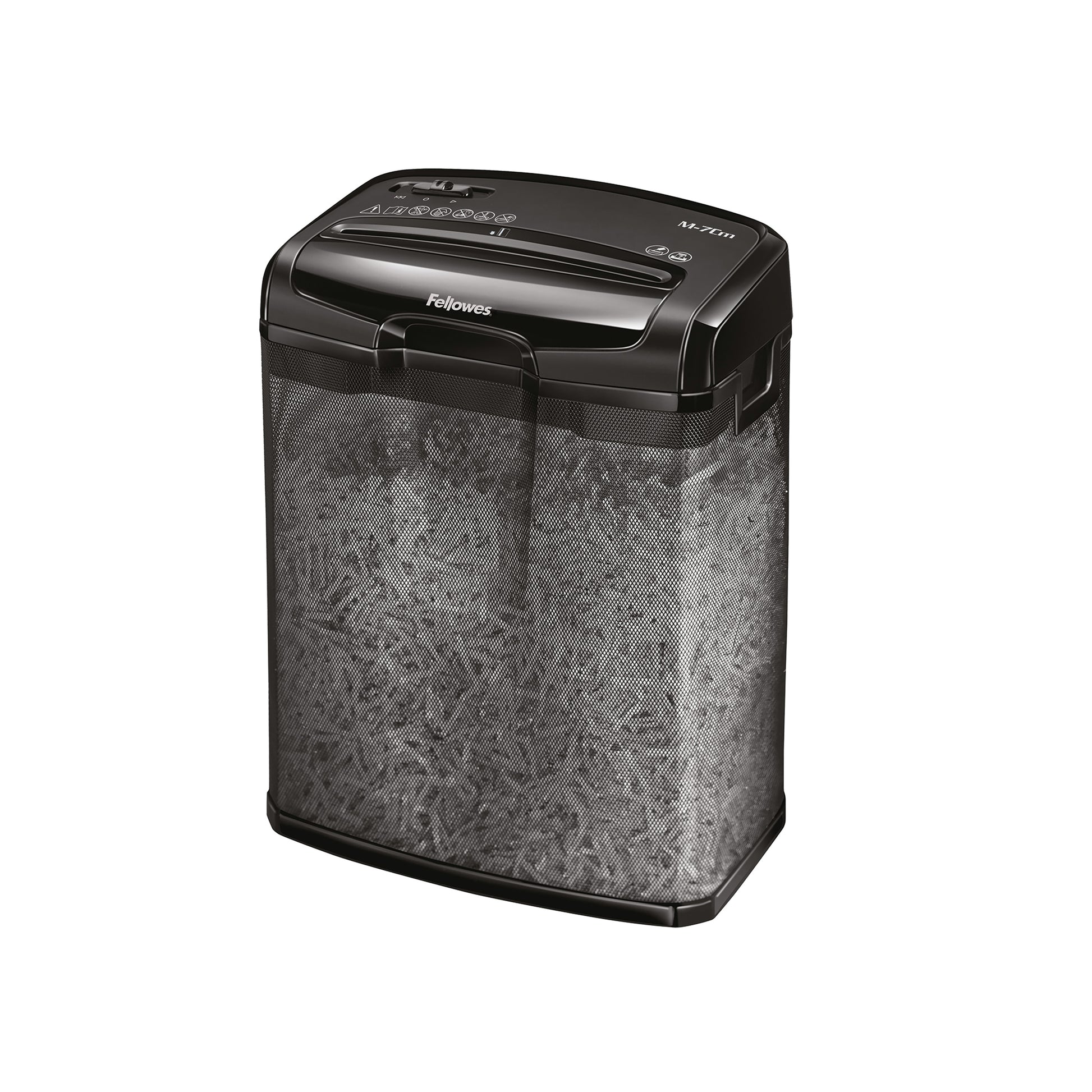 Fellowes Poweshred M-7CM Cross Cut Shredder 4701901. Designed for light use by 1 user 4701901. Shreds 7 sheets per pass (70gsm) into 4 x 35mm cross-cut particles (Security Level P-4).