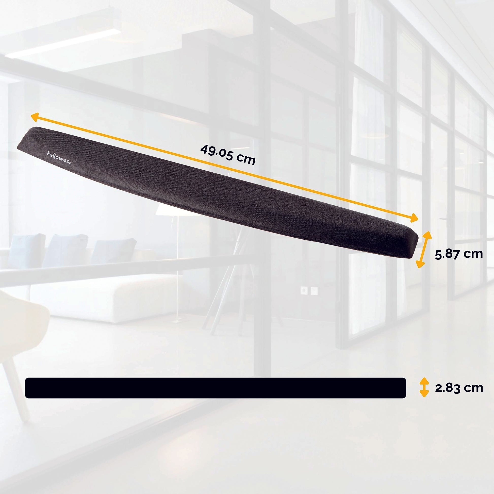 Fellowes Memory Foam Keyboard Rest. Soft Memory Foam pillow conforms to your wrist redistributes pressure points ensures proper hand position when typing and retains body heat for improved circulation. Colour - Black.