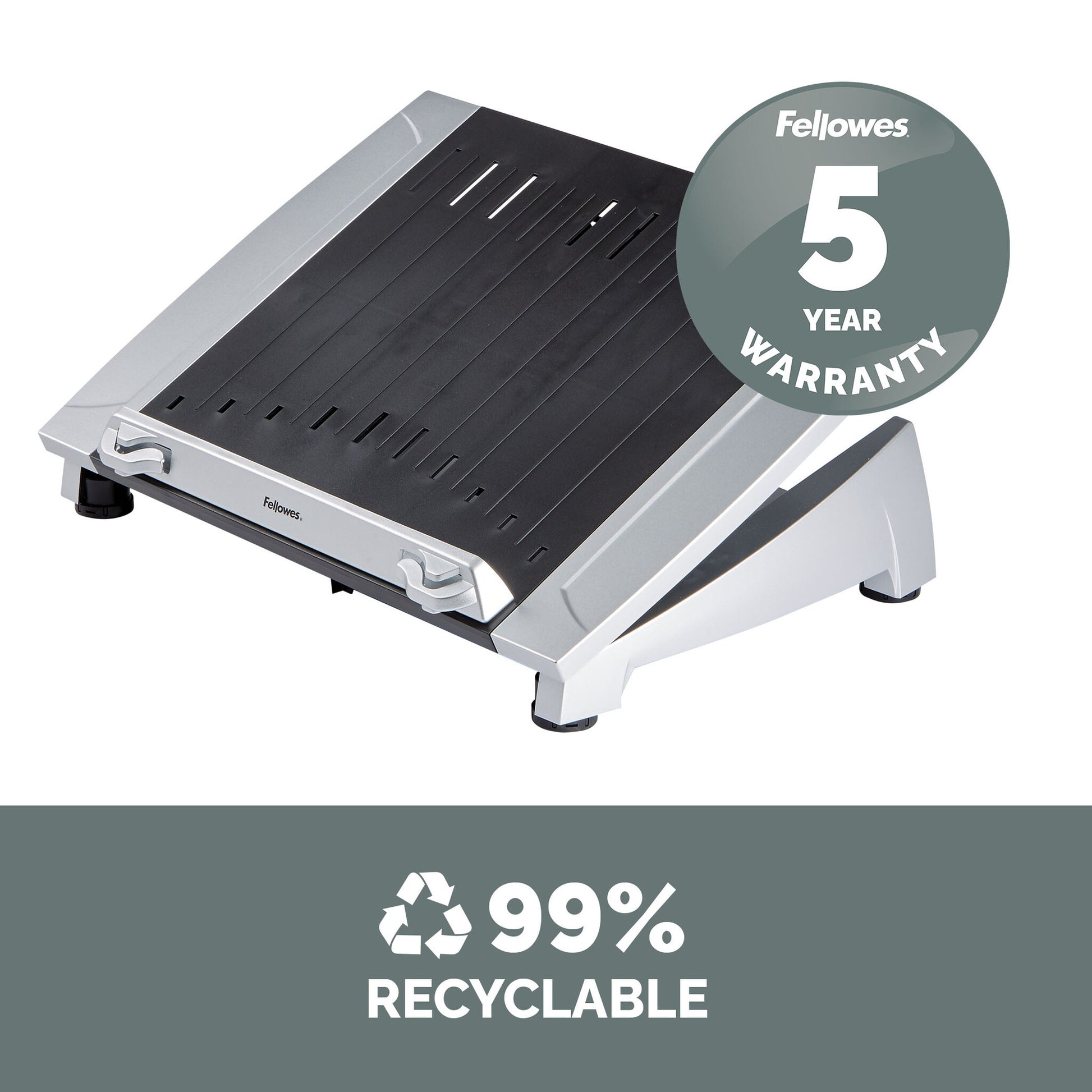 The Fellowes Office Suites Laptop Stand Plus is designed to provide a range of solutions that transform your home office into an inspiring work environment. Work in both style and comfort with the Office Suites Laptop Riser Plus from Fellowes which can support laptops of up to 5kg and features a stabilising front edge which prevents the laptop from sliding off the stand. The Fellowes Office Suites Laptop cooling stand offers 5 simple height adjustments (between 140 - 190mm) which positions your screen at a comfortable viewing angle best suited to you. For added convenience, this laptop stand features a built-in document holder, which allows you to place your documents at a comfortable reading position. This Fellowes laptop stand raises your laptop screen to eye level and positions the screen at a more comfortable viewing height with simple adjustments, relieving the stress placed on your shoulders neck and eyes. The contemporary and clean design of the laptop holder prevents your laptop from overheating as well as complementing the modern workspace perfectly.