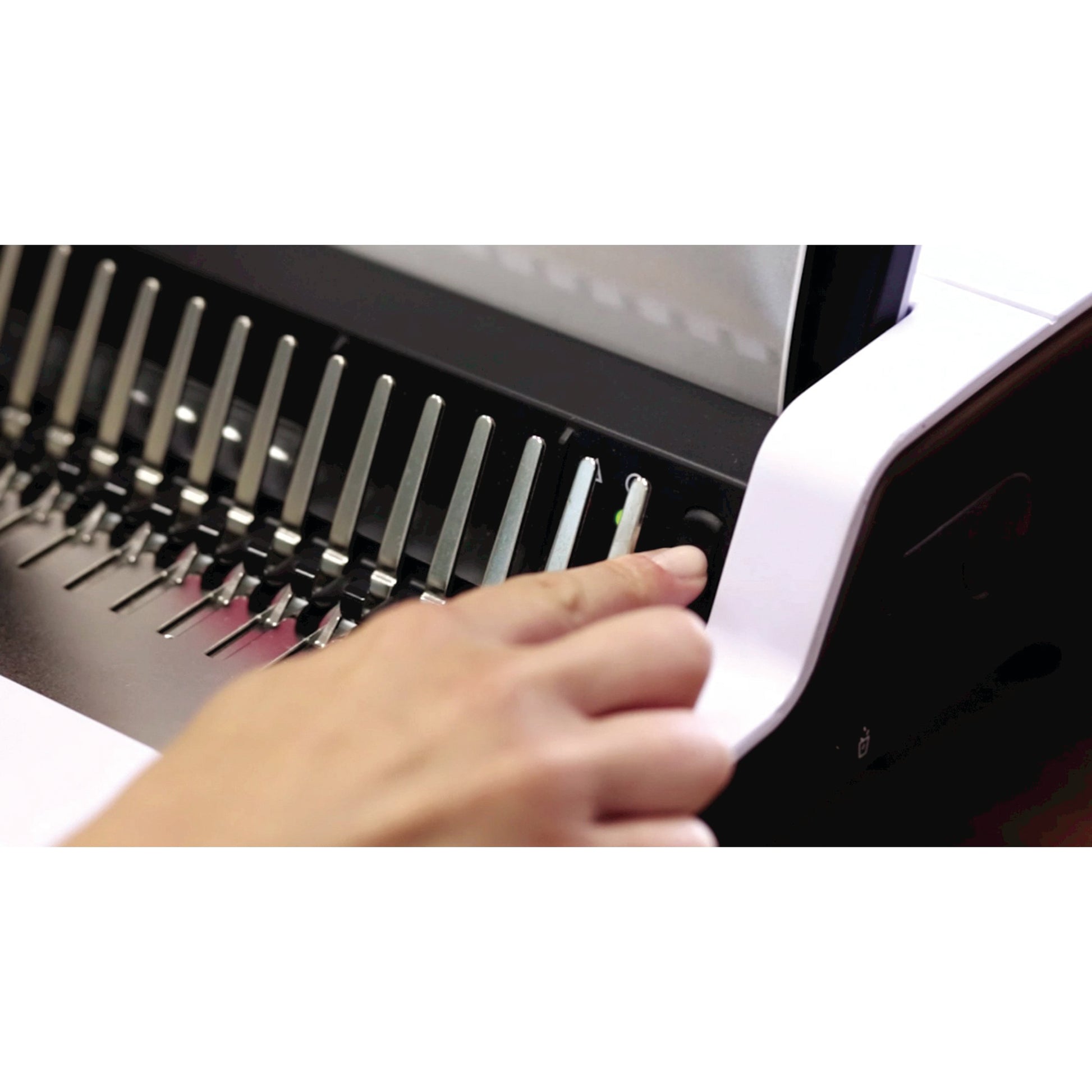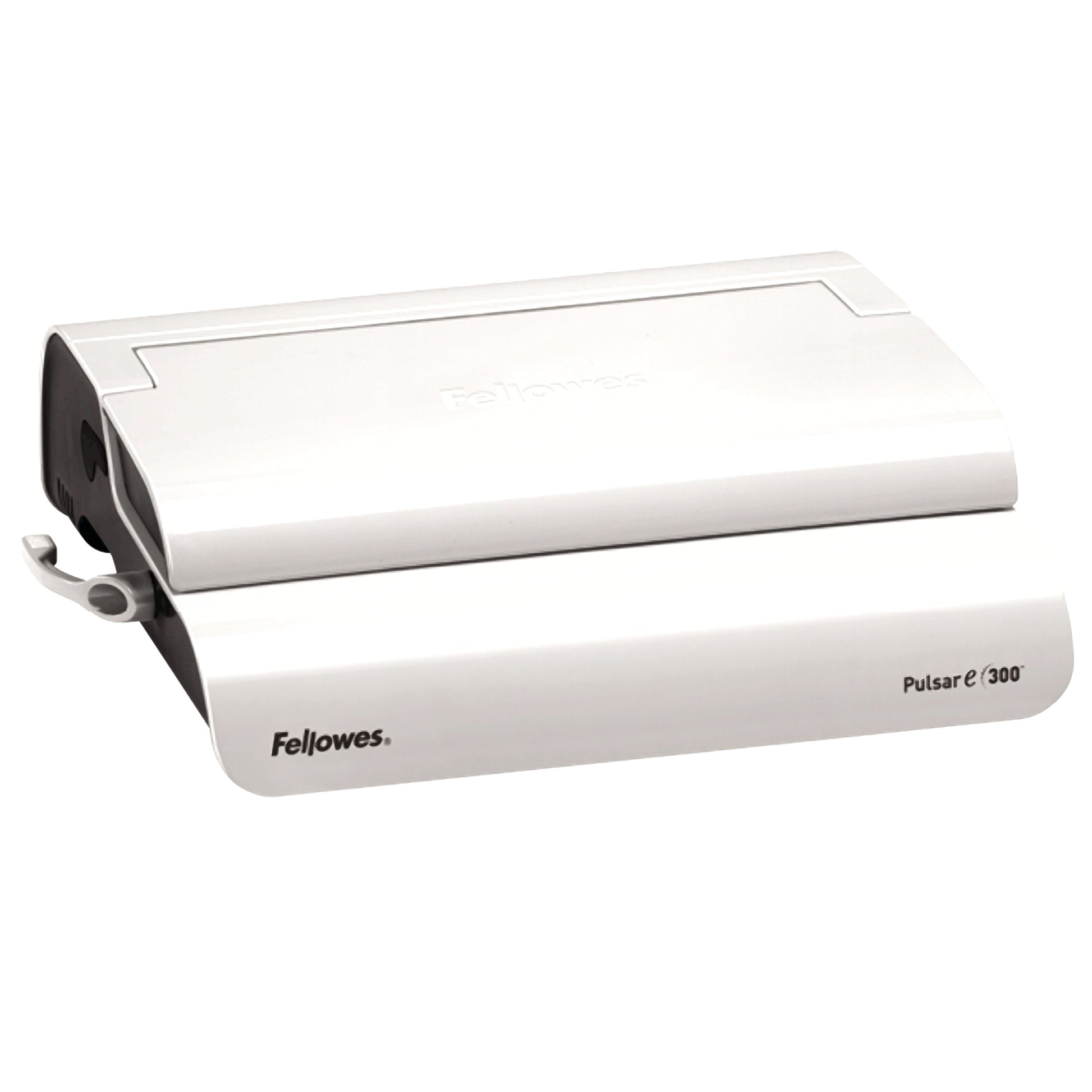 Fellowes Pulsar Comb Binding Machine. Medium sized office binder for general use featuring Electric punching up to 15 sheets of 80gsm paper at a time binds up to 325 sheets with a 38mm comb and vertical document loading insures consistent punch alignment.