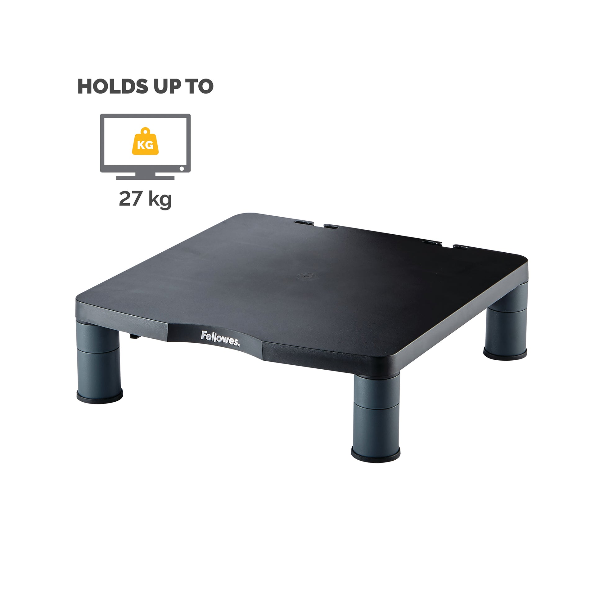 Fellowes Standard Monitor Riser made from sturdy high impact plastic supports up to 40lb or 15ins monitors. Adjustable to three different heights 2-4ins fitted with non-skid foot rings to ensure stability on any surface. W333xH51-102x343mm.
