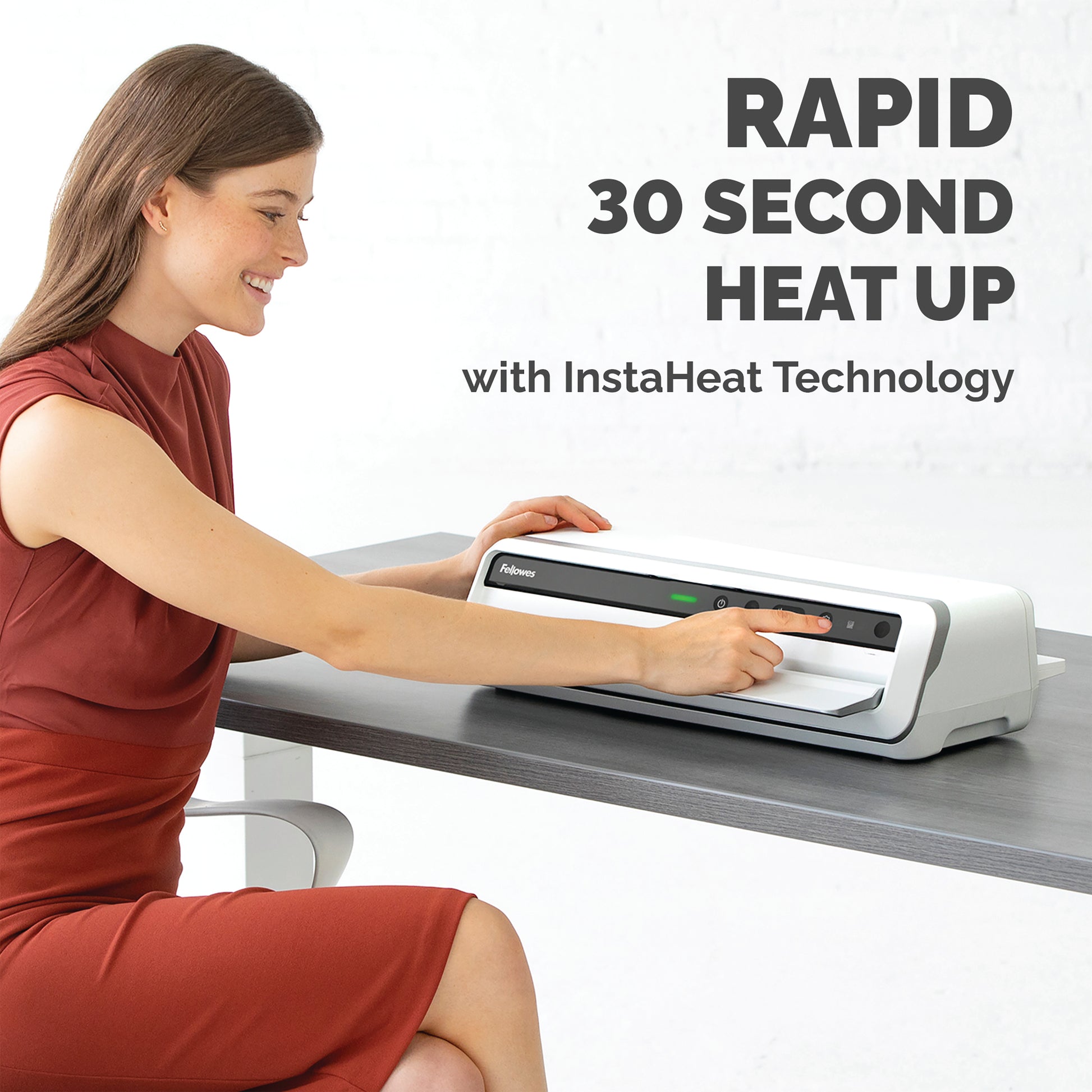 Fellowes Venus A3 Laminator White 5746701. Protects documents up to A3 size. InstaHeat Technology: 30-60 seconds to heat up. Laminates an A4 pouch in under 10 seconds (2180mm per minute). Laminates all pouches up to 250 micron thickness.