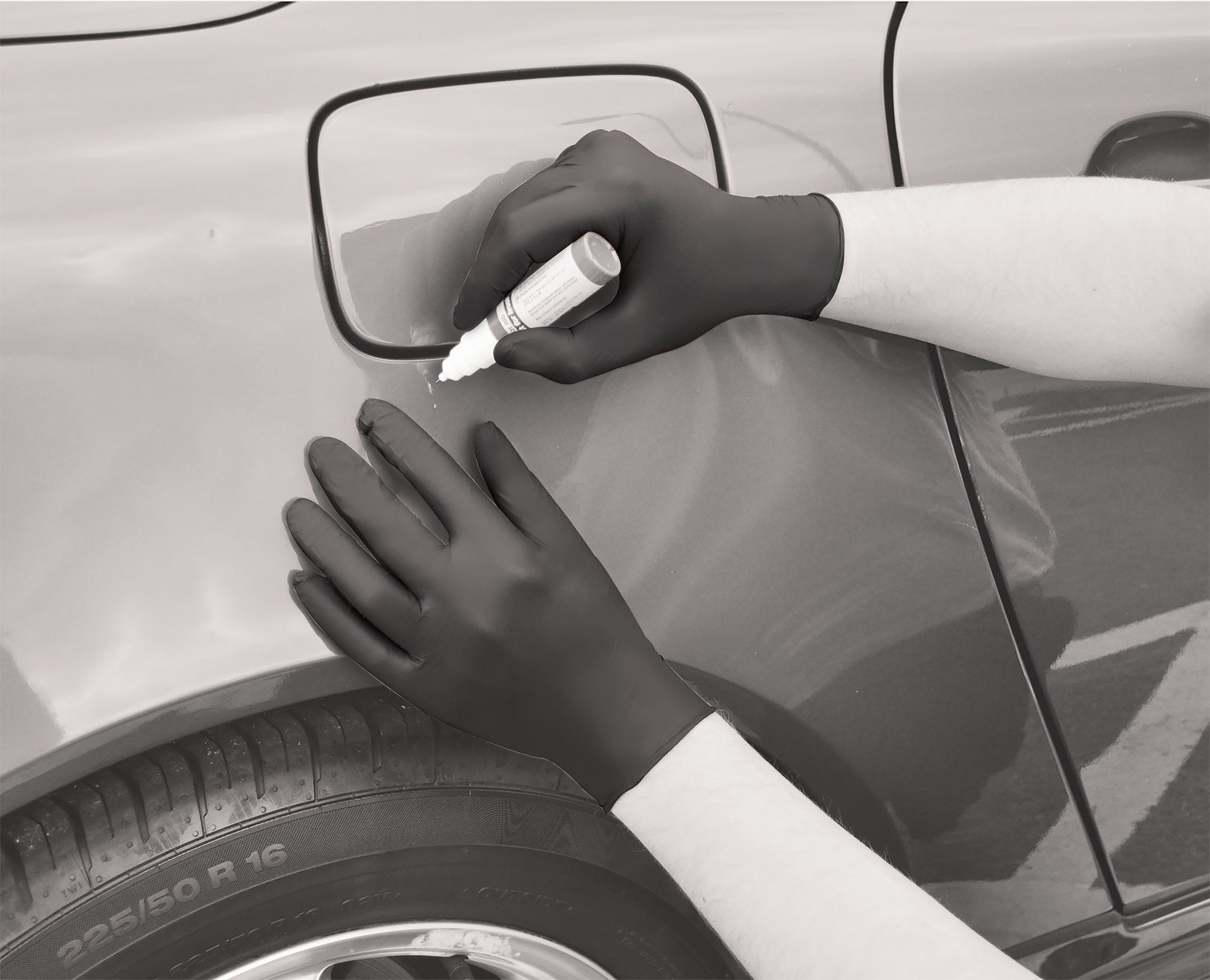 Black nitrile examination gloves. Manufactured from nitrile butadiene. Powder free to reduce dust contamination. Latex free. Tested for European standards EN420 EN388 and EN374. Suitable for infection control food and chemical contact. Size: Large.