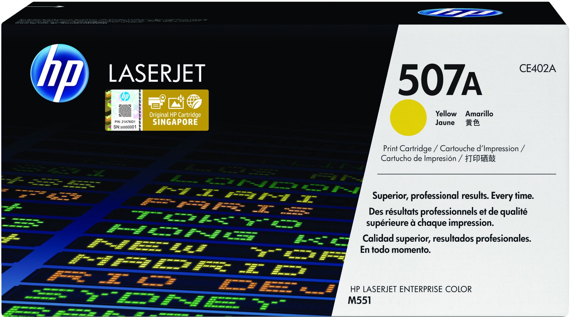 HP 507A Yellow LaserJet Toner Cartridge keeps business productivity high. Avoid the hassle and expense of reprints. Produce standout business documents and presentations. Save time and money when you print marketing materials in the office.