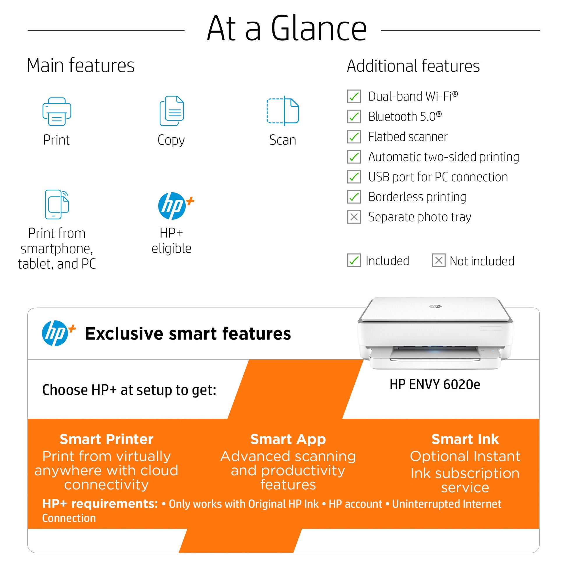Everything families need For the whole family. Print and scan documents, photos, and more. Set up and connect on any device,[1] and get self-healing Wi-Fi.[2] Choose HP+ and get the smart printing system that keeps you connected and ready to print from virtually anywhere.[1]. HP Instant Ink eligible
