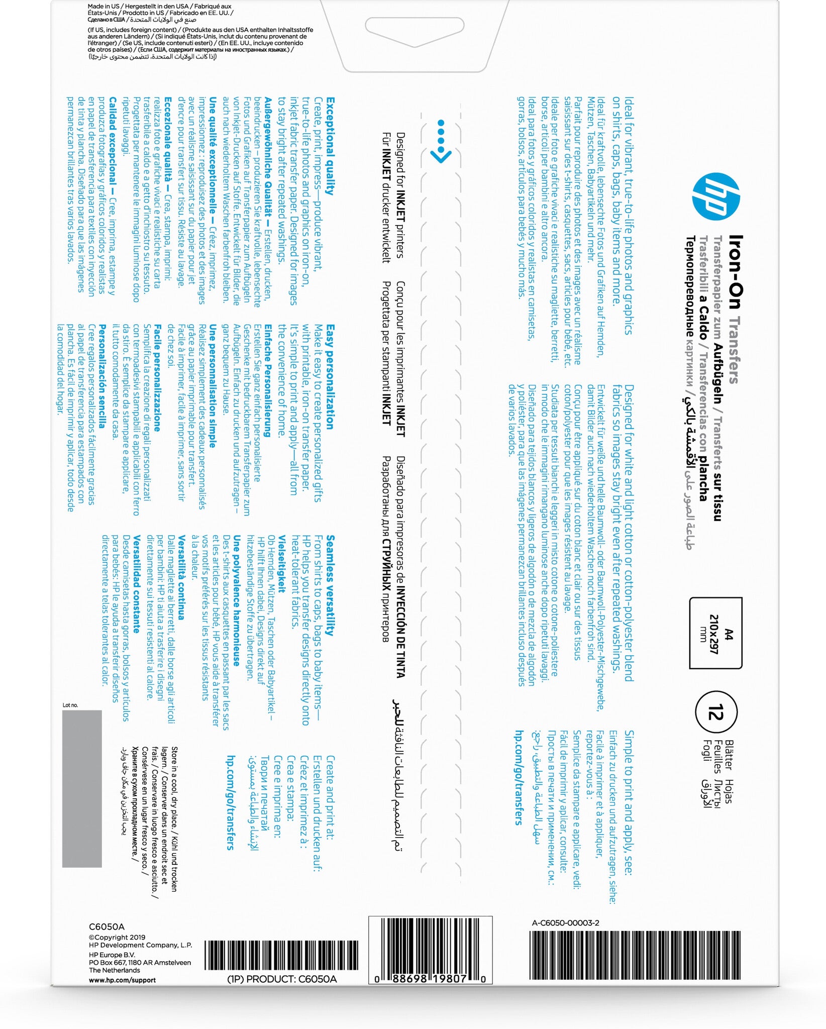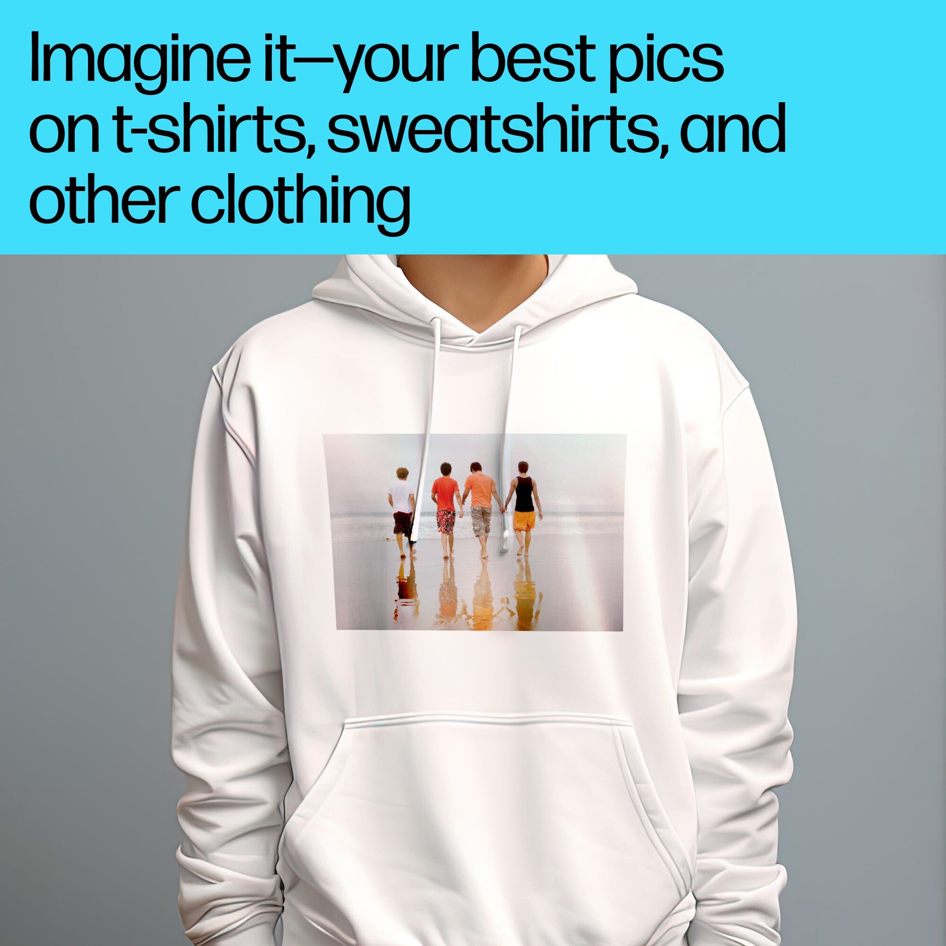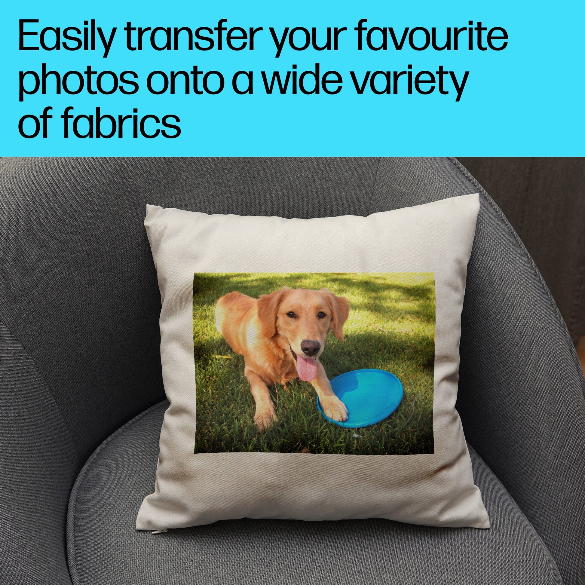 HP Iron-on Transfers are suitable for cotton or cotton/poly blend fabrics. These iron-on, cool-peel inkjet transfers are specially designed to produce vivid colour images and graphics on white or light-coloured fabrics.