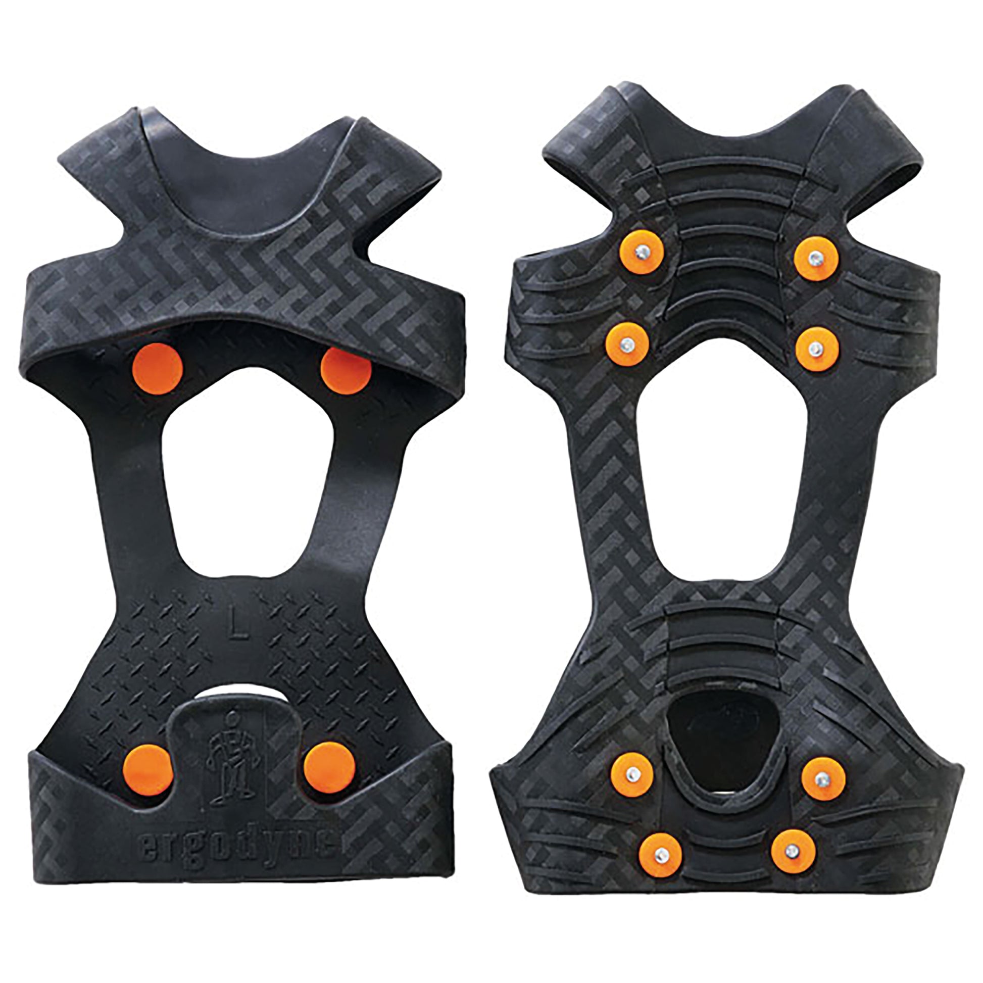 Ergodyne Ice Traction Boot Attachment. One piece ice traction device for shoes or boots for grip and stability. Rugged steel studs. Stretchable rubber for easy on/off fit. Abrasion Resistant. Hand Washable. Water Repellent.