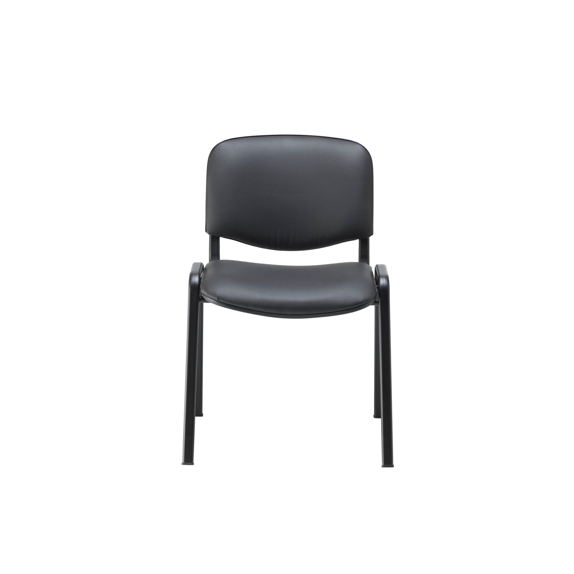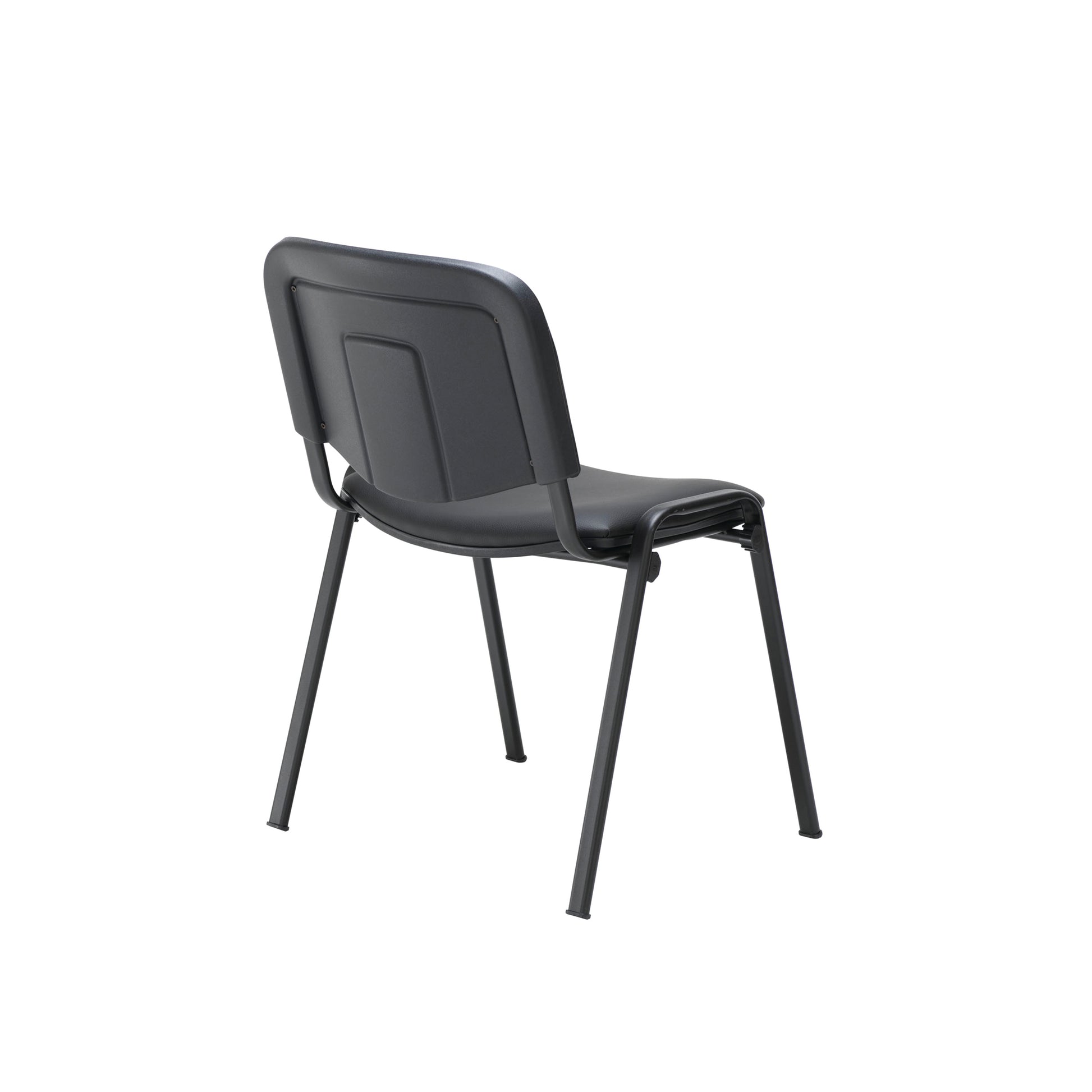 Jemini Ultra Multipurpose Stacking Chair 532x585x805mm Black Polyurethane KF90557. Conforms to BSEN 15373: Level 2. Fabrics are tested to BS 7176. Stackable up to 4 high. Suitable for users up to 115kg. Colour: Black leather look.
