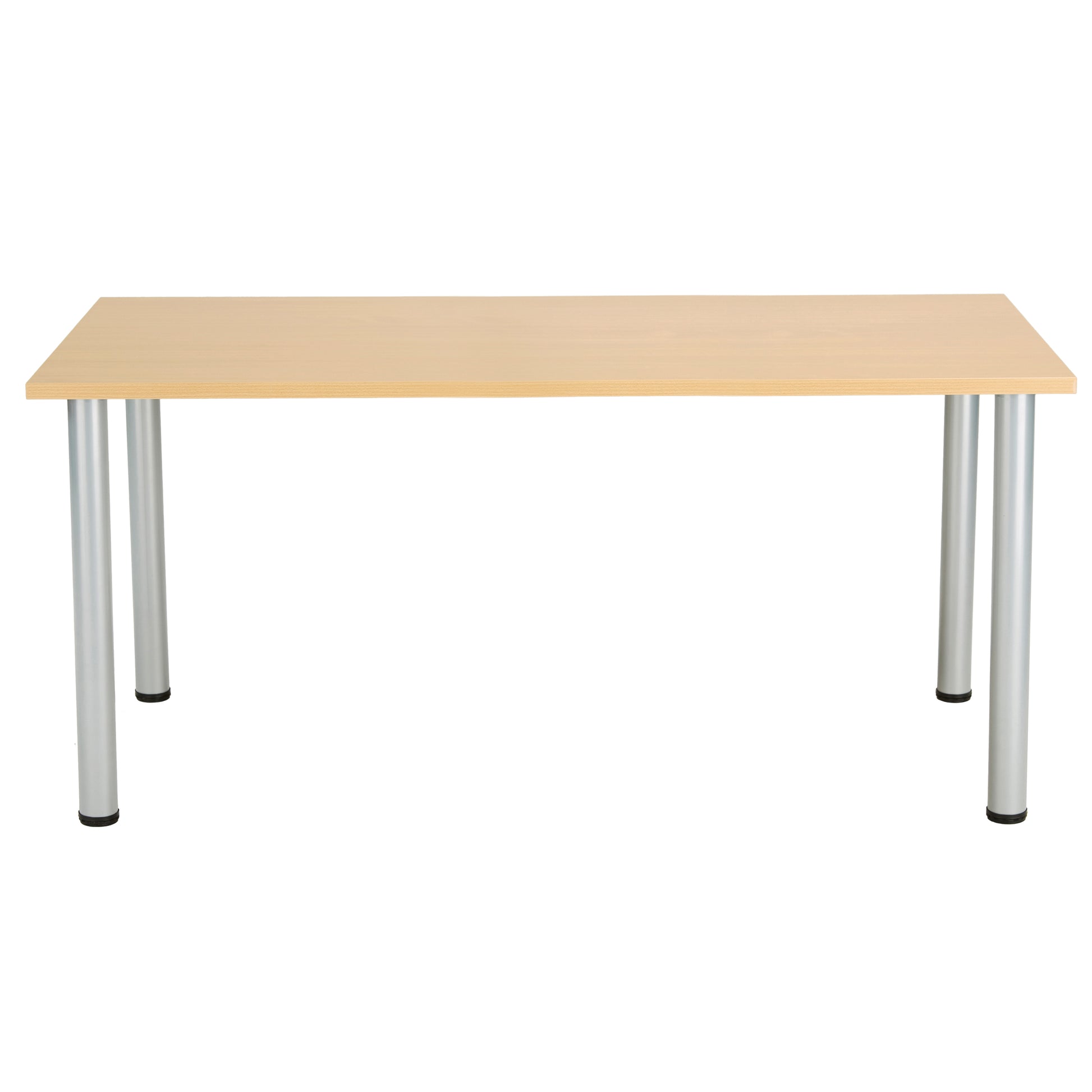 Jemini Rectangular Meeting Table 1600x800x730mm Nova Oak/Silver KF816647. Ideal for meeting rooms, breakout areas, canteens and more. Tubular metal legs. 25mm thick MFC desktop. Shape: Rectangular. Leg Colour: Silver. Dimensions (WxDxH): 1600x800x730mm.