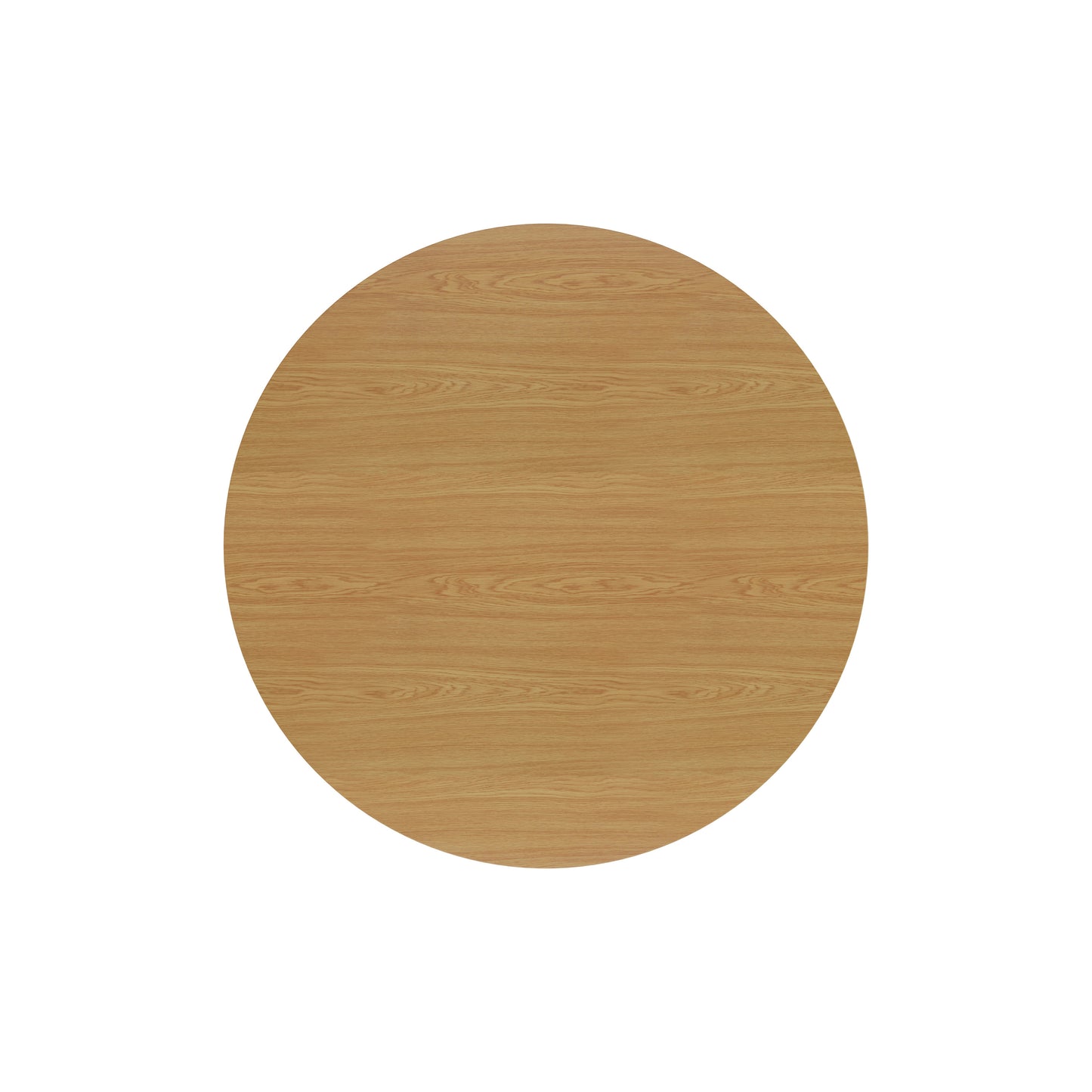 Jemini Round Meeting Table 1100x1100x730mm Nova Oak KF79884. The perfect table to enhance any meeting area. 25mm thick desktop. Classic cruciform base. Diameter: 1200mm. Height: 730mm. Finish: Nova Oak. Non-returnable.