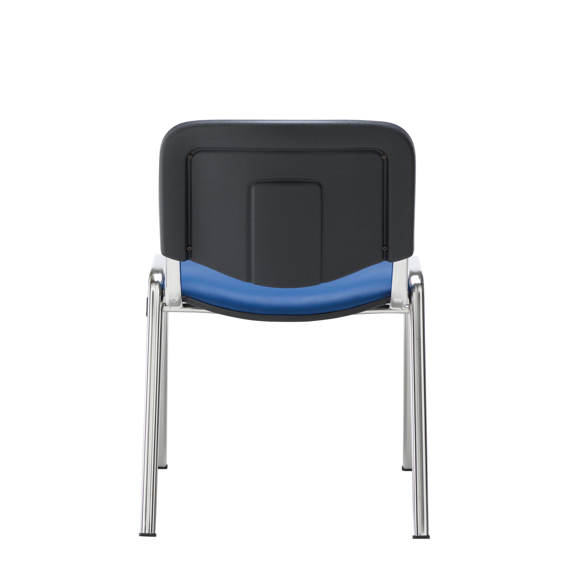 Jemini Ultra Multipurpose Stacking Chair PU Blue/Chrome KF72906. PU seat/back for easy cleaning. Usage time 8 hrs. Colour: Blue/Chrome. Seat Dimensions (WxD): 475x415mm. Back Dimensions (WxH): 485x310mm. Seat Height: 475mm. Stacks 4 high. Warranty 2Yrs.