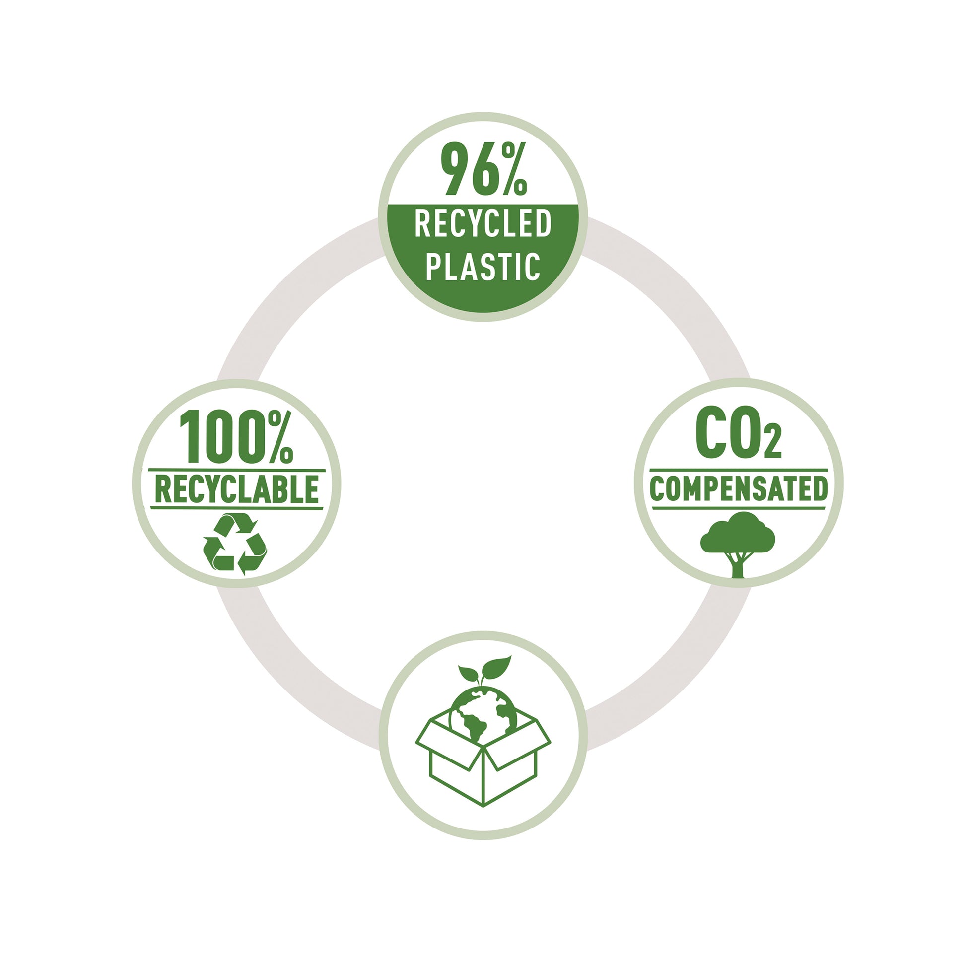 Eye-catching, premium reliable small stapler made with post consumer recycled plastic for everyday office use.100% recyclable as it can be completely dismantled in the different material types. Patented Direct Impact Technology and Leitz Power Performance staples P3 (24/6, 26/6) ensure perfect stapling every time. This reliable small stapler perfectly complements other products from the Leitz Recycle range and is made to last. Modern and contemporary green stationery that will look great at home and in the office. With the eco friendly Recycle range from Leitz you can both improve your office environment – and the environment of our planet.