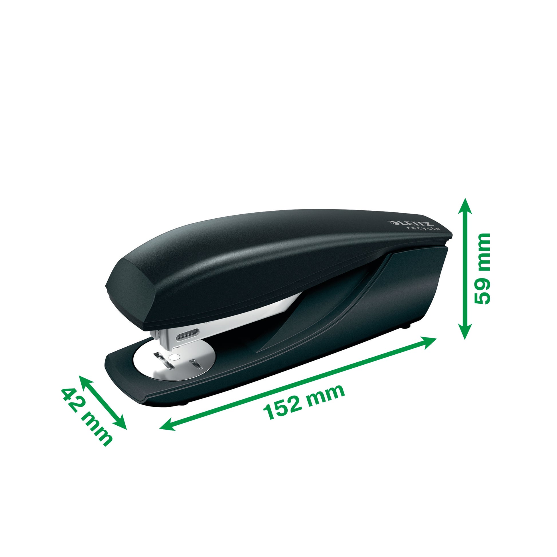 Eye-catching, premium stapler made with post consumer recycled plastic for every day use. 100% recyclable as it can be completely dismantled in the different material types. Patented Direct Impact Technology and Leitz Power Performance staples P3 (24/6, 26/6) ensure perfect stapling every time. This robust stapler perfectly complements other products from the Leitz Recycle range and is made to last. Modern and contemporary green stationery that will look great at home and in the office. With the eco friendly Recycle range from Leitz you can both improve your office environment – and the environment of our planet.