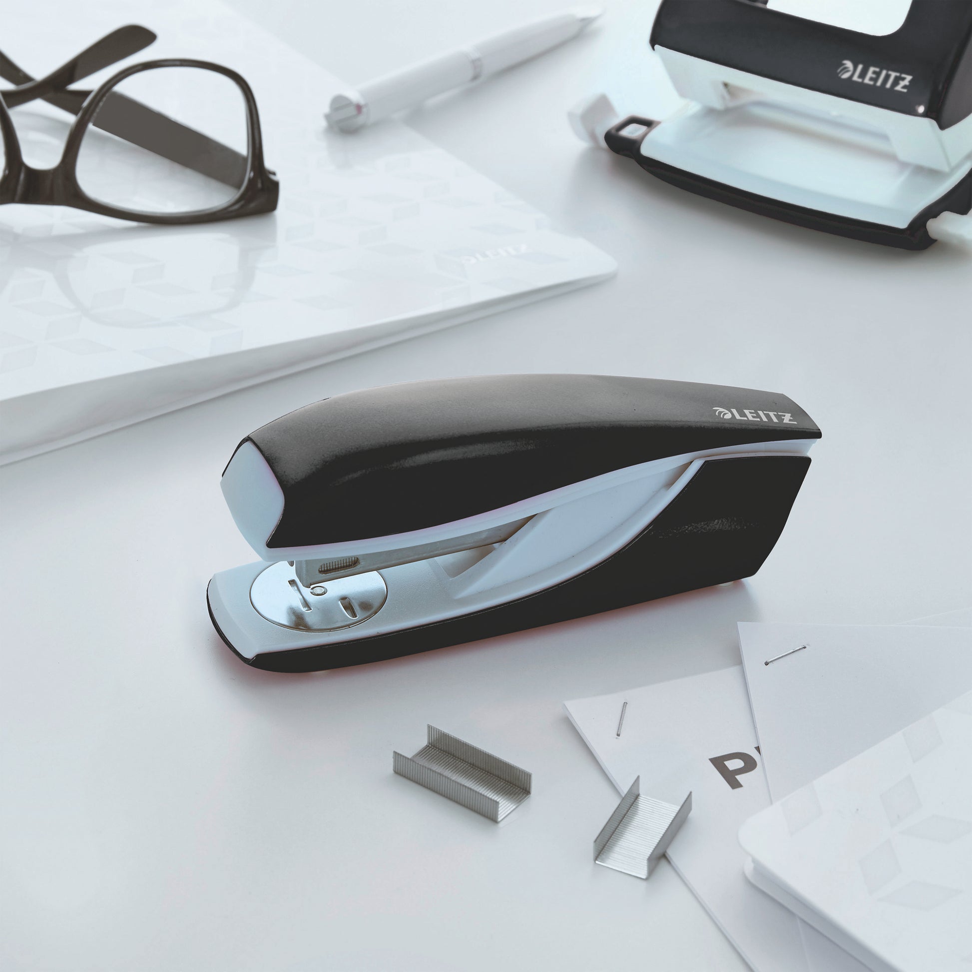 Metal stapler in striking WOW colours that let your personality shine through. For everyday use. Robust and reliable. Patented Direct Impact Technology and Leitz Power Performance staples P3 (24/6, 26/6) ensure perfect stapling every time.