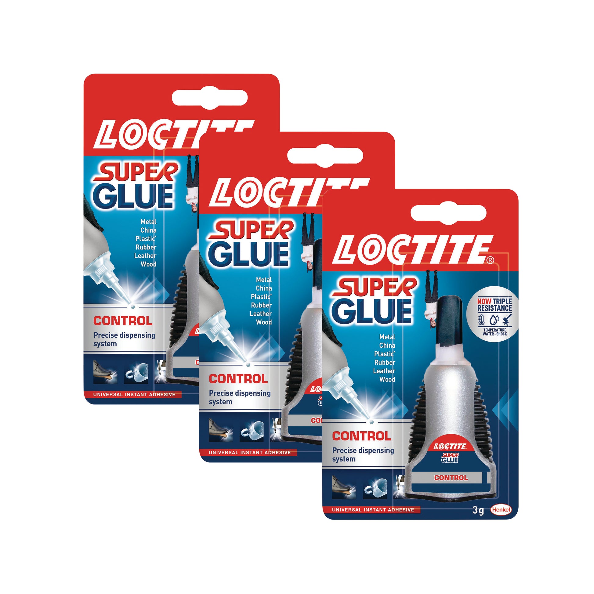 Loctite Super Glue Control 4g 3 For 2. High performance instant adhesive with advanced dispenser for pinpoint accuracy. Water, dishwasher, shock and temperature resistant. Easy grip squeeze bottle allows controlled application.
