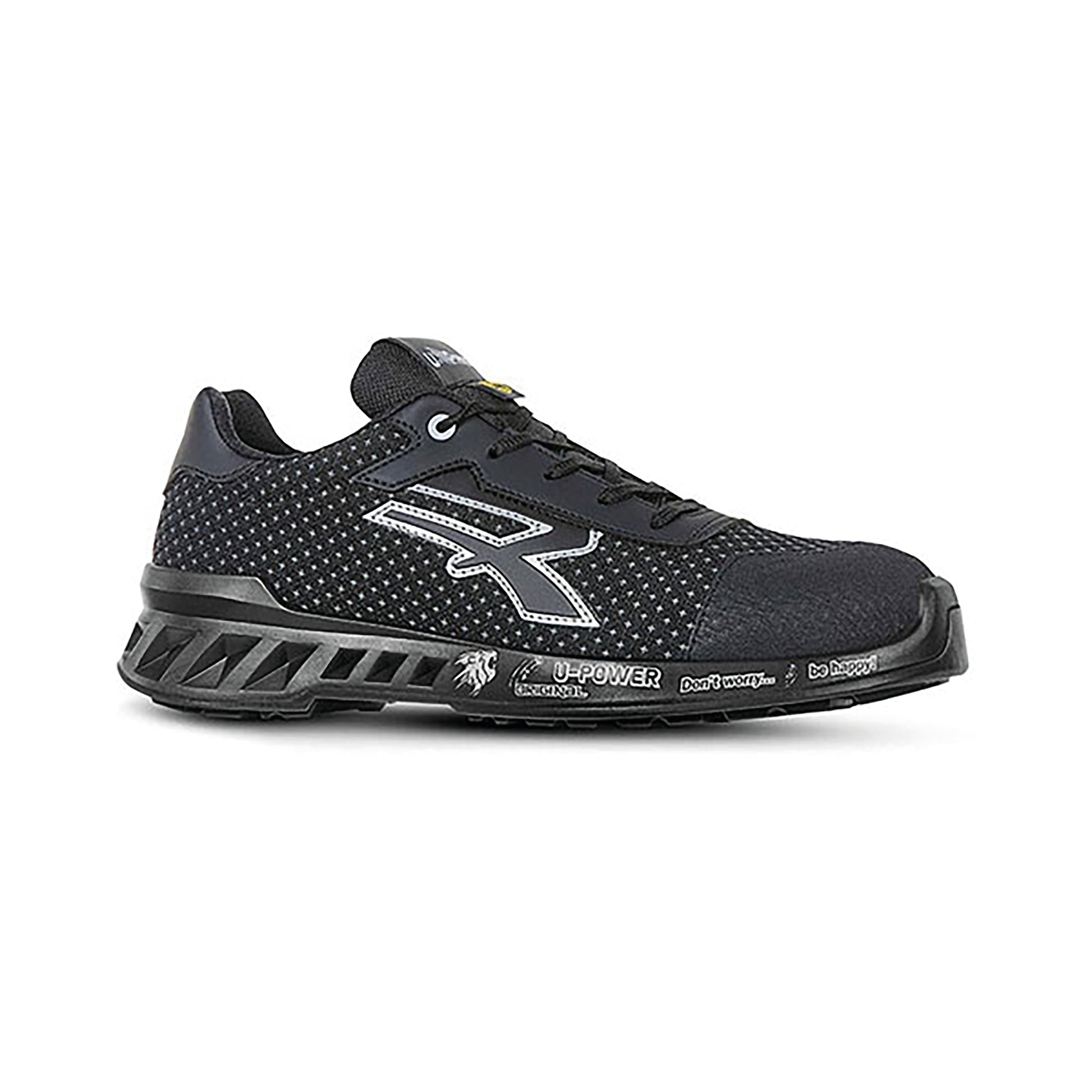 U.Power Logan Light safety shoe with aluminium toe cap and scuff cap protection. E-TPU Infinergy insole. Anti-static and abrasion resistant outsole. Oil and slip resistant. WingTexbreathable lining. Lace up pierce resistant and water repellent uppers.