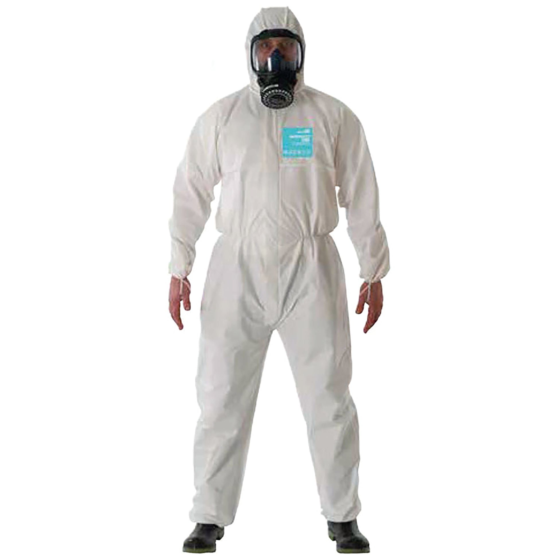 Ansell Microgard 2000 Coverall. Microporous laminate protective suit. Anti-static. Protects against liquid chemical, solid particulates, radioactive contamination. Elasticated hood, wrists, ankles, waist. 2-way zip. re-sealable storm flap. Finger loops.