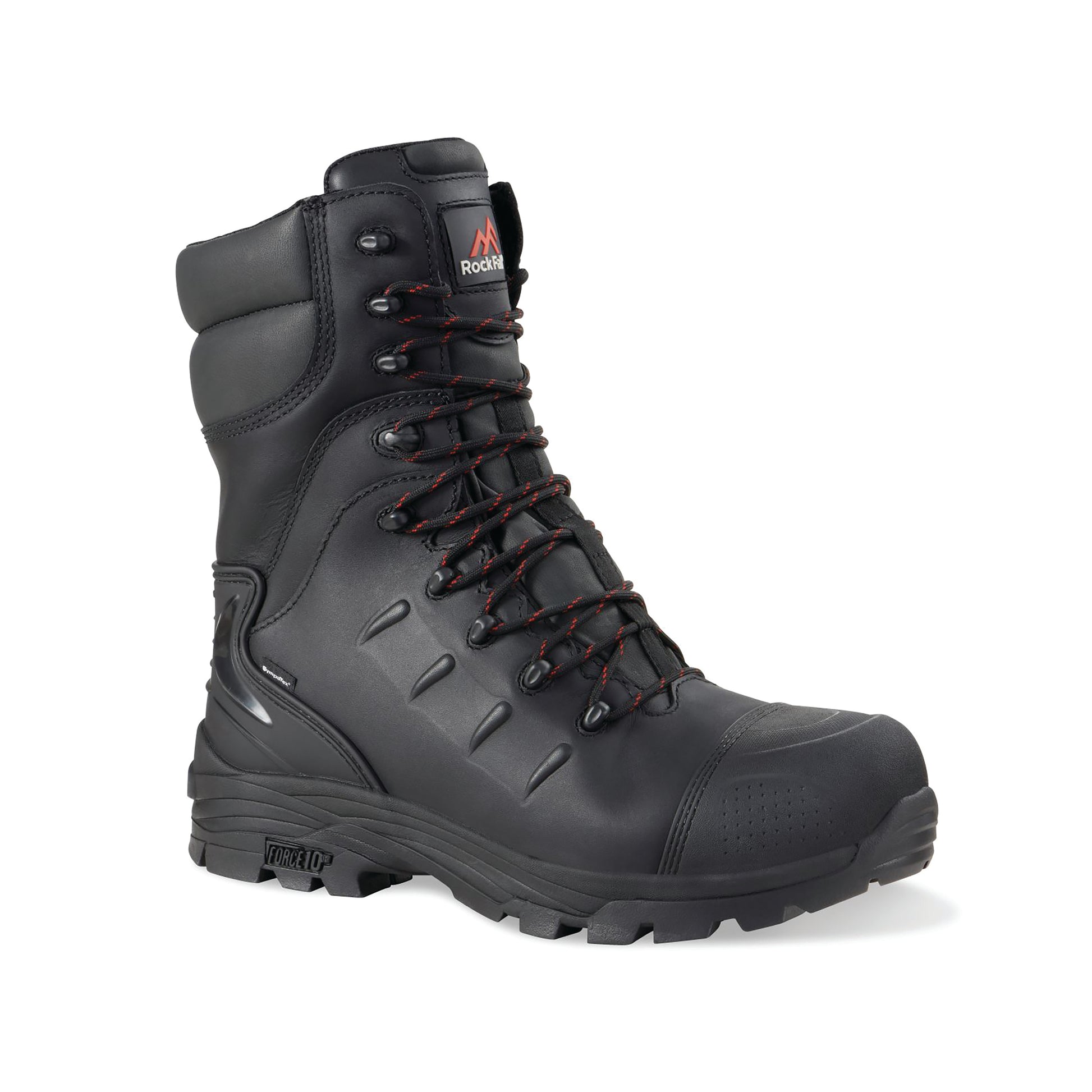 Rock Fall RF540 Monzonite High Leg Internal Metatarsal Waterproof Safety Boot With Side Zip. Protective toecap and midsole. Internal metatarsal guard. Zip fastening. Water repellent upper. Oil resistant. Heat resistant sole to 300 degs. Fully waterproof.