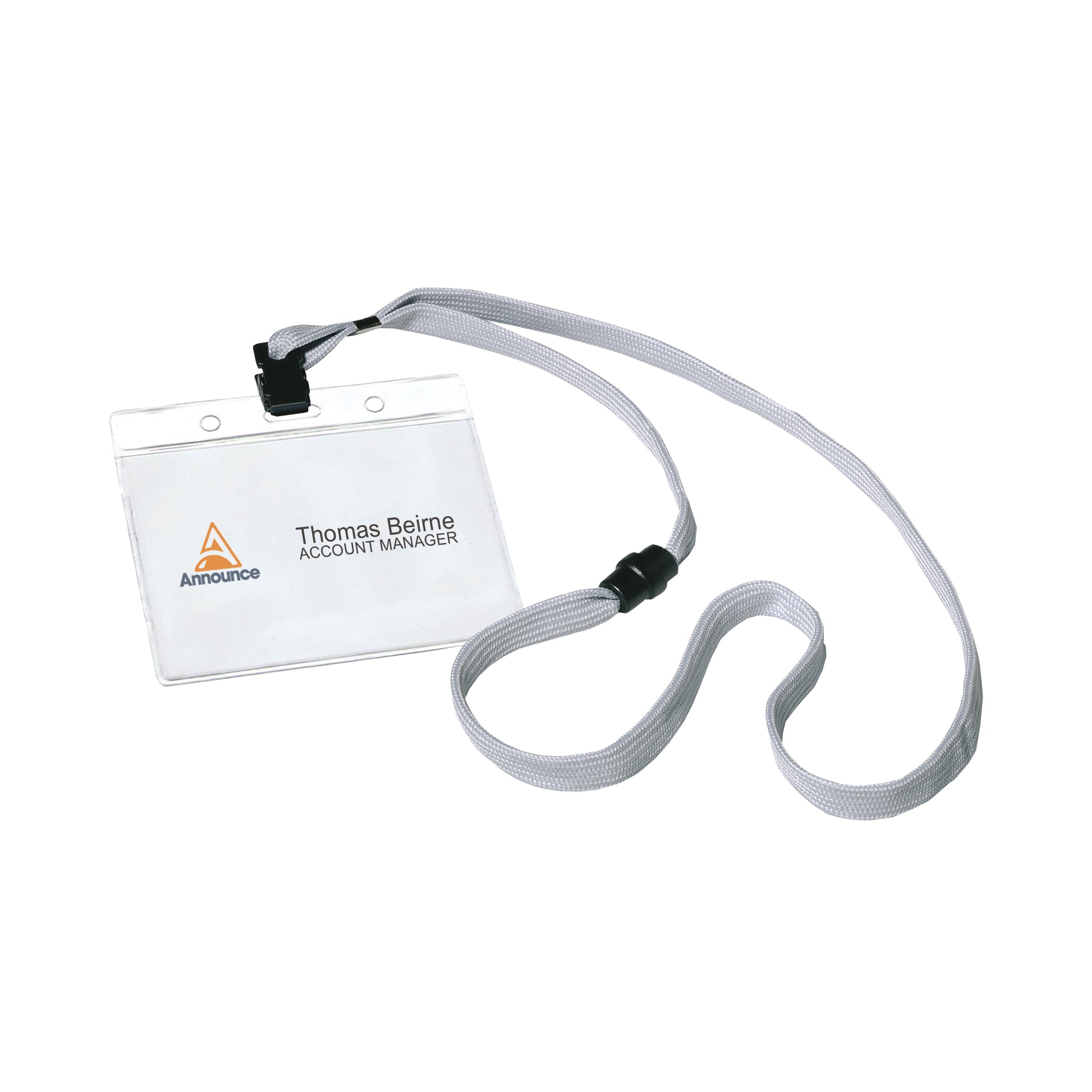 Announce Name Badge/Textile Necklace (Pack of 10) PV00674. Ideal for security passes, ID and events. Combines a textile necklace and badge with a safety release.